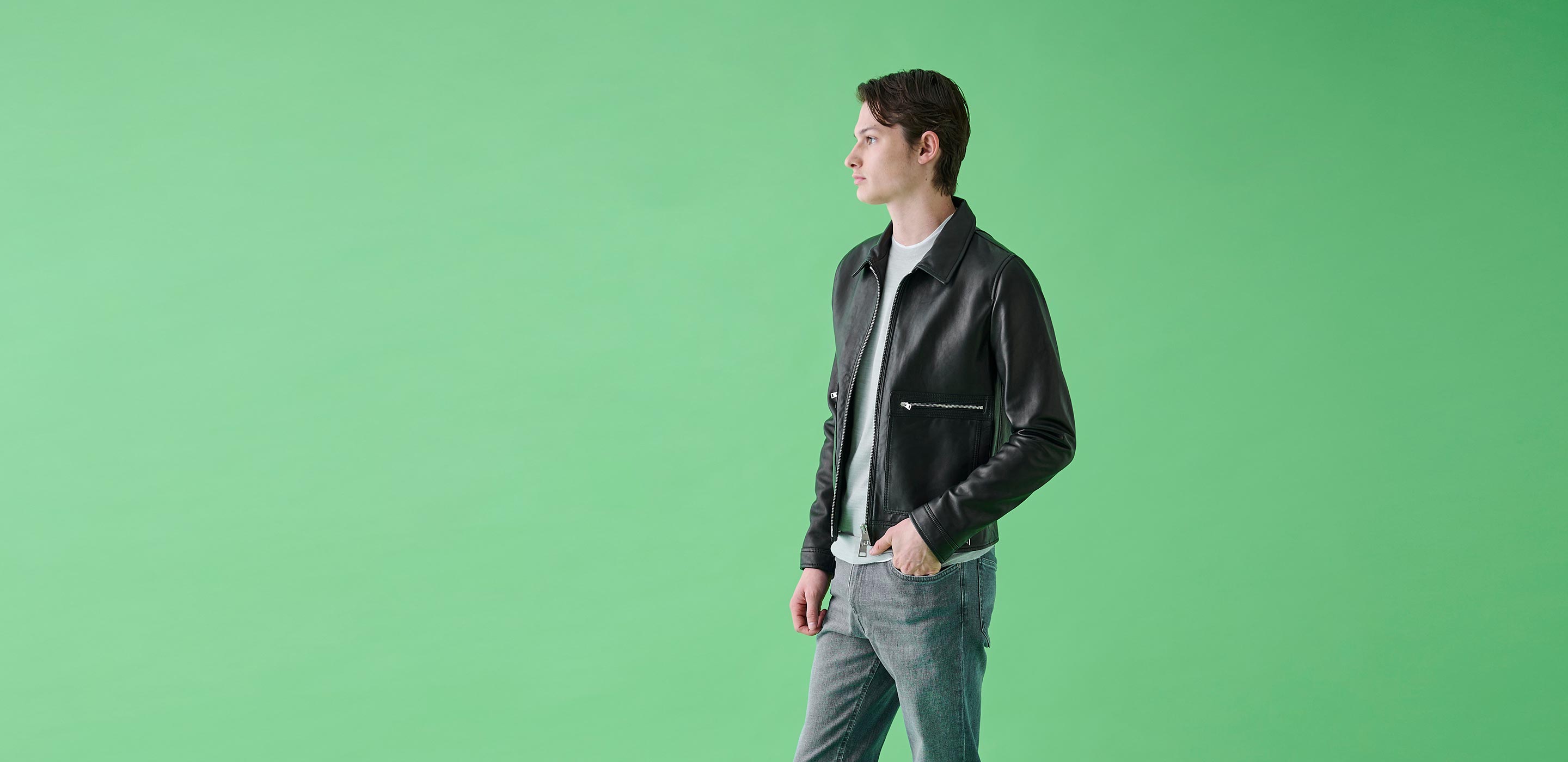 4月はデニムが最も活躍する季節。強さを抑えつつ品と軽さを両立できるのがグレーデニム。大人の装いを自然に整える1本です。 レザーを軽やかに整える大人のバラン…