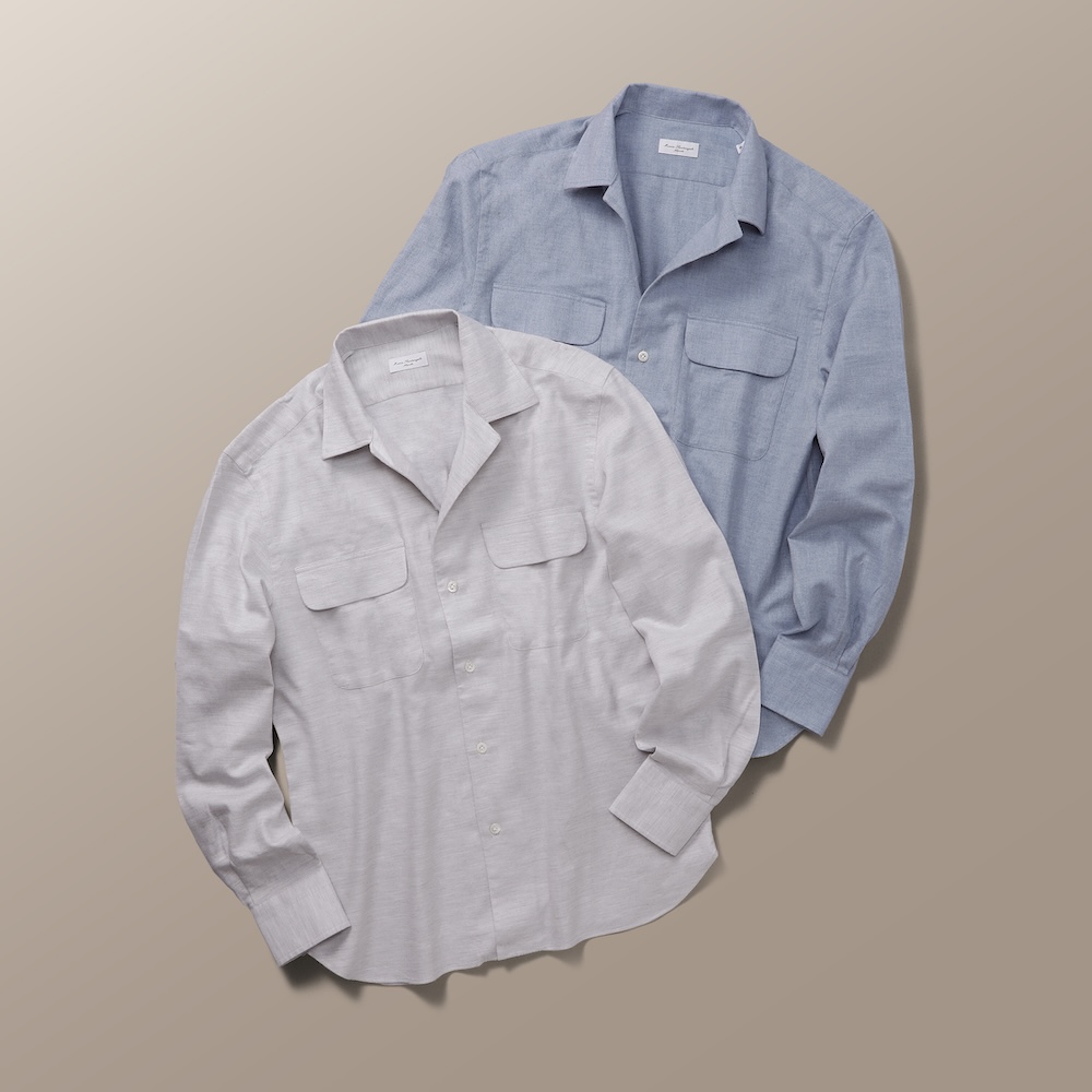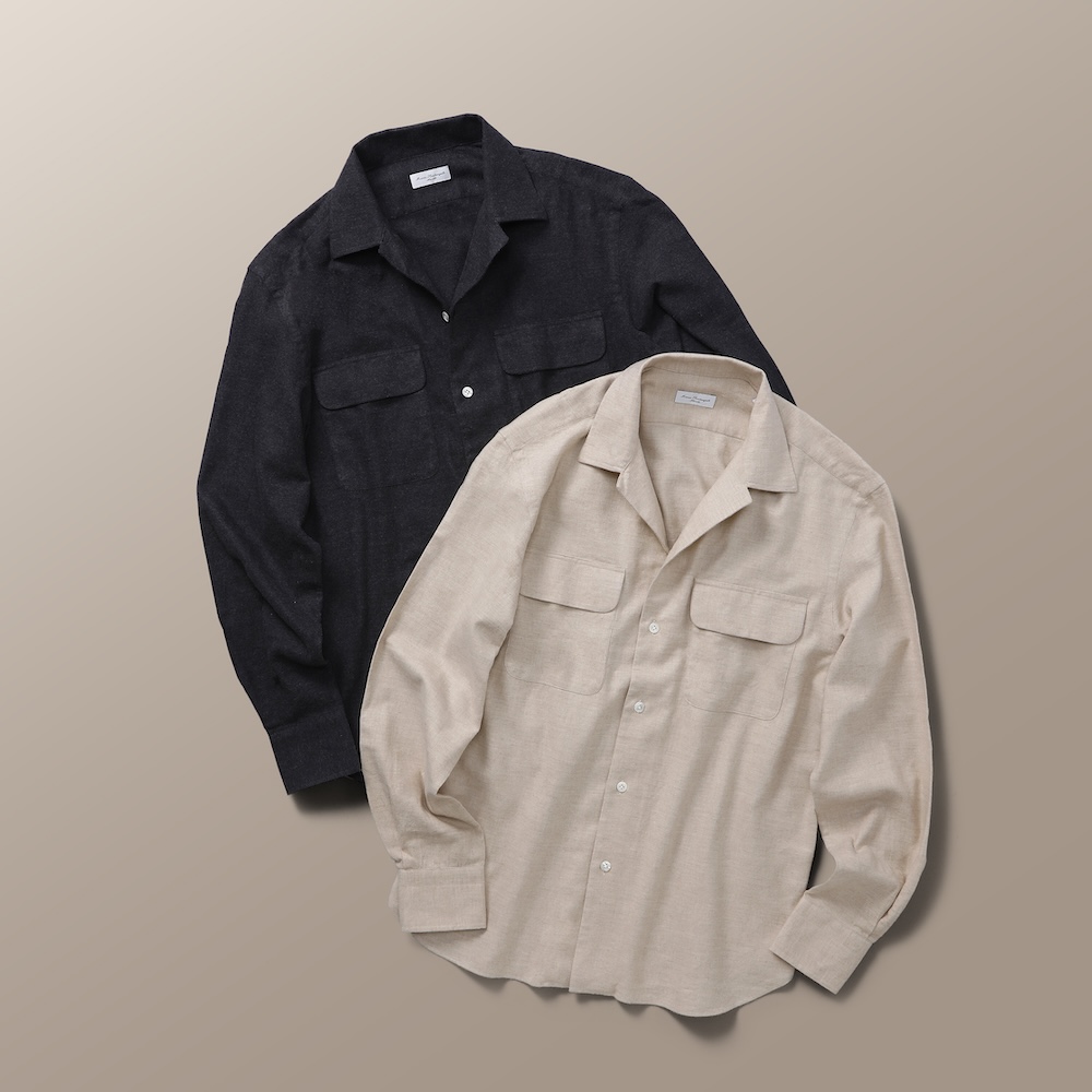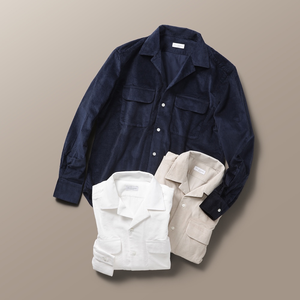 当初は有名メゾンのOEM生産のみであった「MARIA SANTANGELO(マリア・サンタンジェロ)社」は近年、自社ブランドを強化。有名メゾンのOEMで培った技術とバックグラウンドには確かなものがあり、運針の細かさ、ストライプやチェックなどの柄合せ、ボディラインの美しさなど、細部に渡り細やかな仕事が見られ、着心地の良さは折り紙付き。一度着用すると、その良さは体が忘れないとリピーターが増殖中のカミチェリアです。