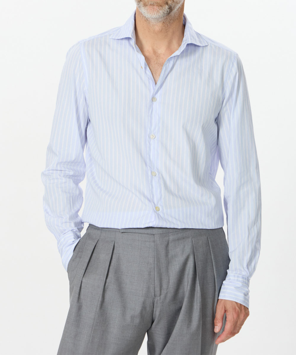 ・フィナモレ / ストレッチ コットン カッタウェイカラー シャツ ¥46,200
