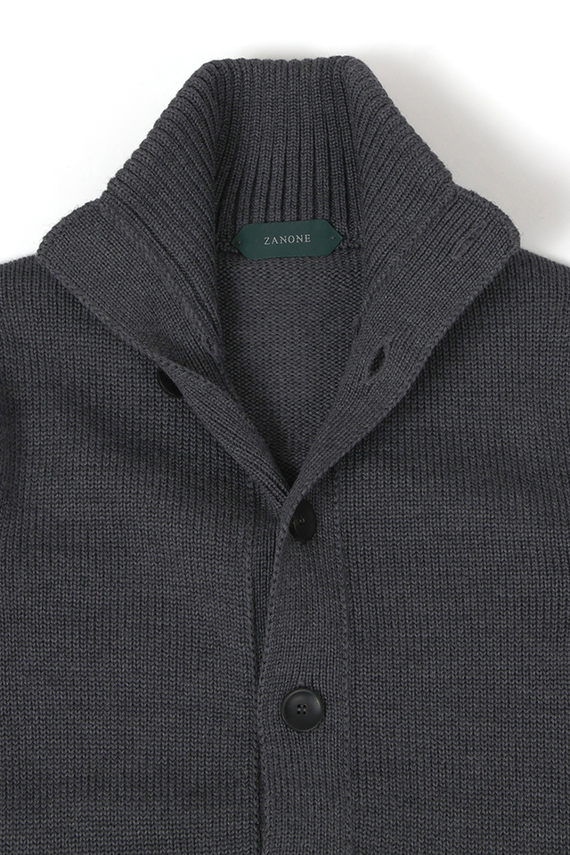 コチラのモデル「CHIOTO」は、5ゲージのスタンドカラーカーディガン。