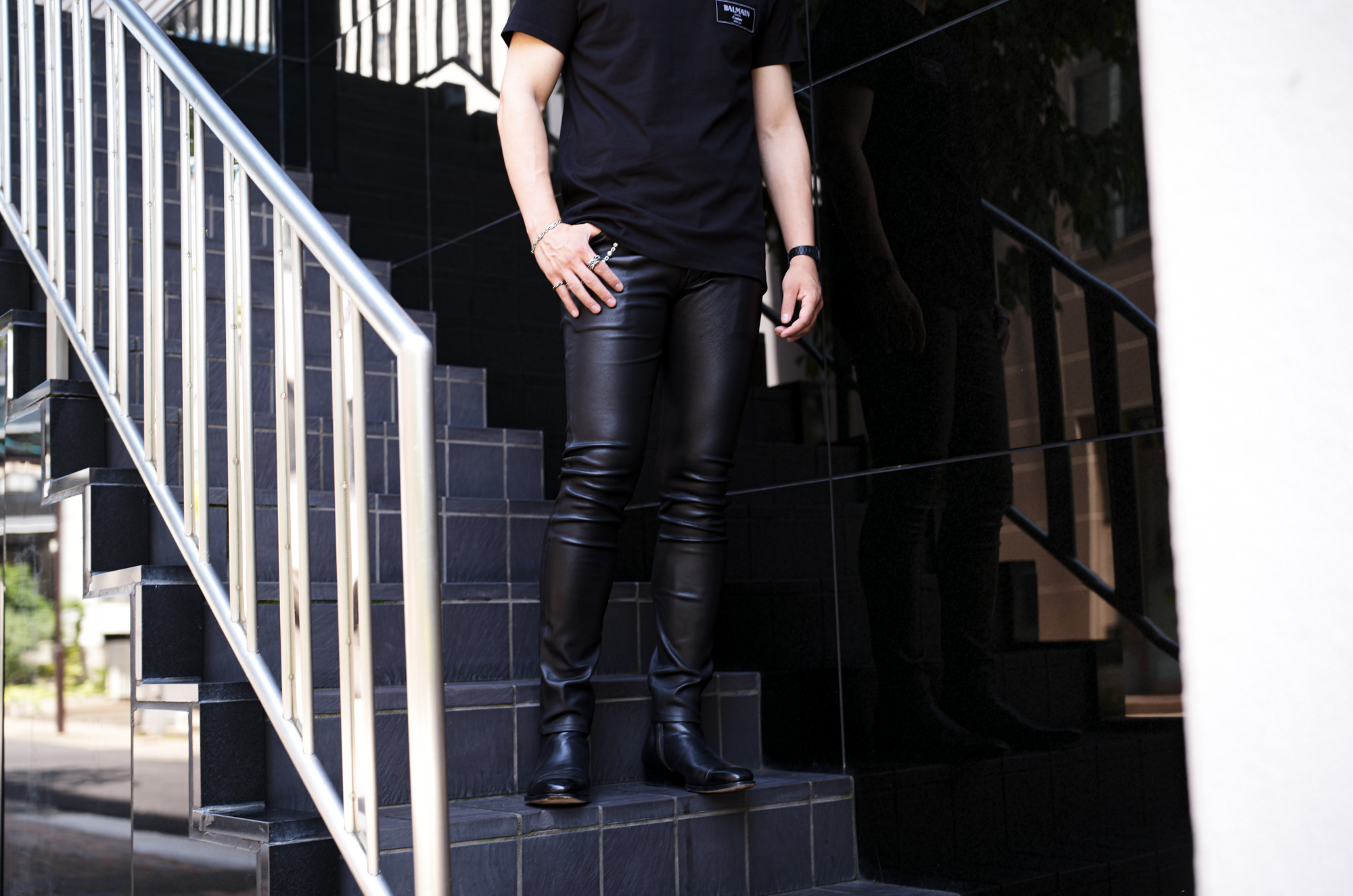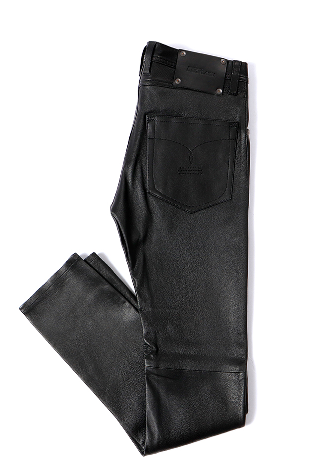 「BACKLASH」のレザーパンツの中でも最もスリムなスキニータイプを採用しました。
