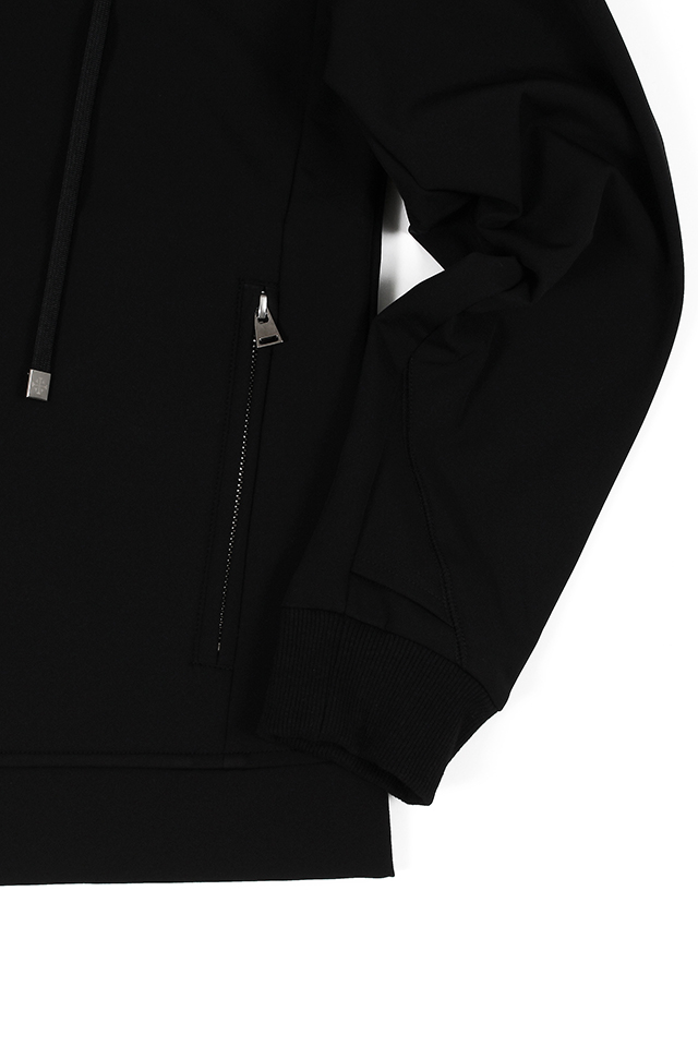 スポーティーなテクニカルストレッチナイロン生地に裏起毛加工を施した秋冬用生地。