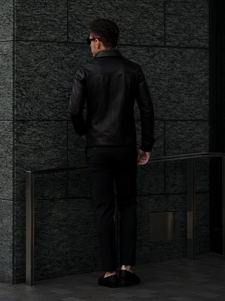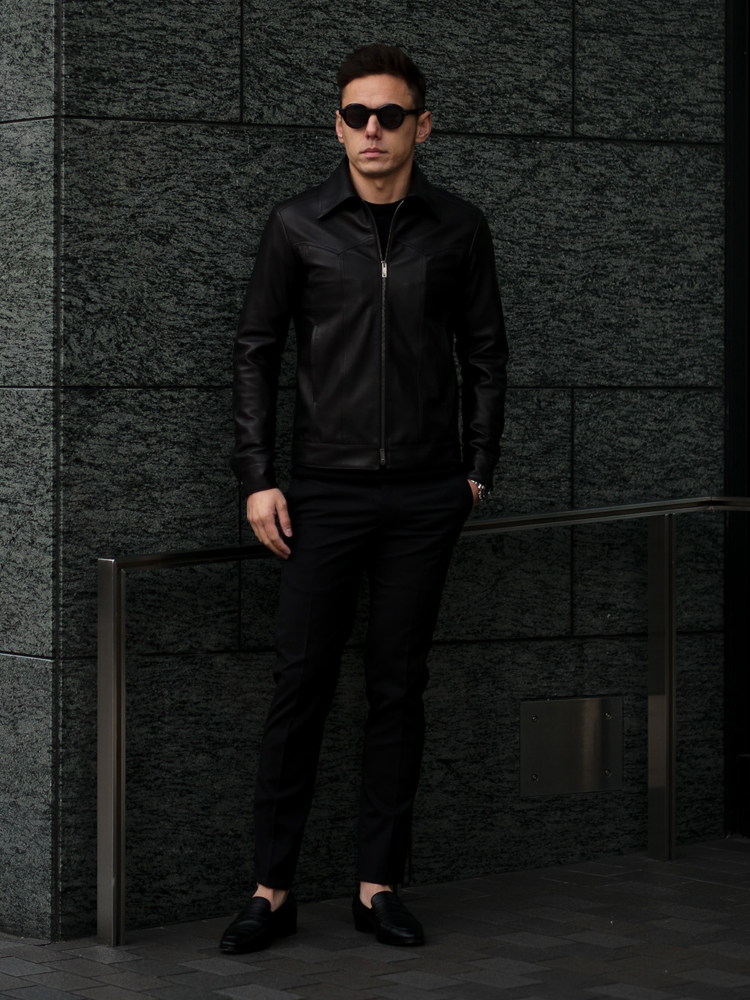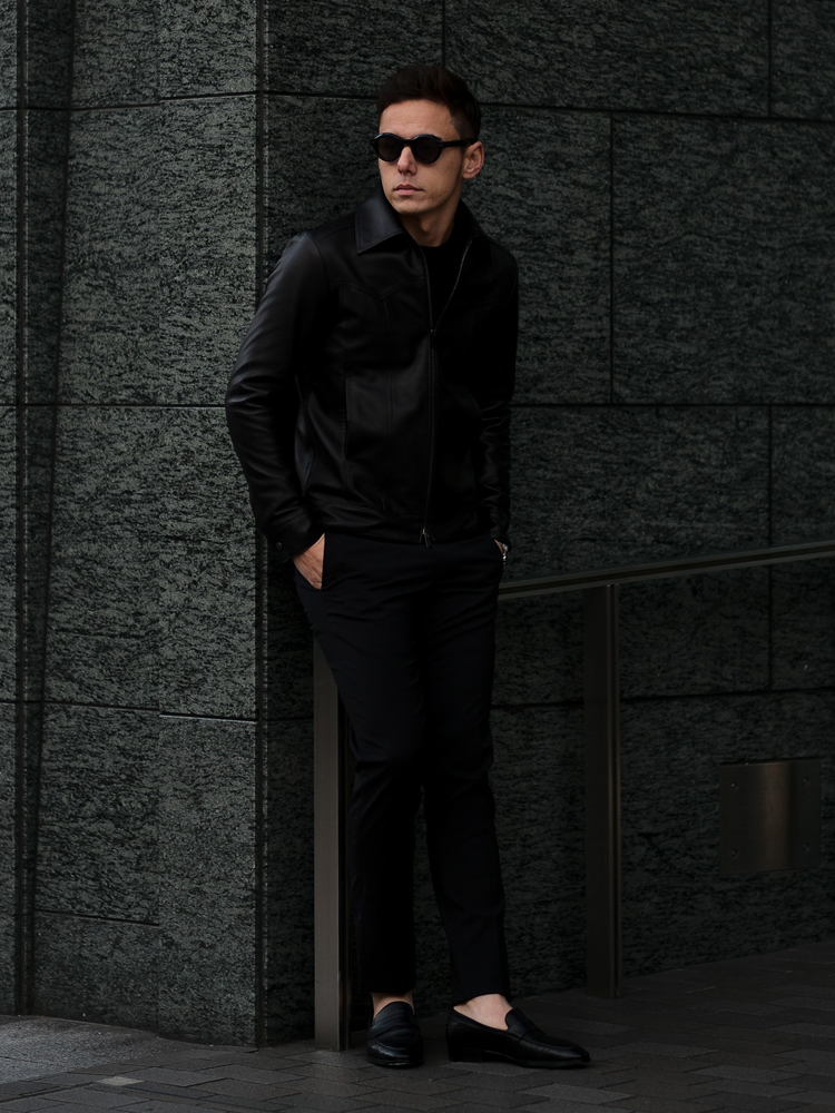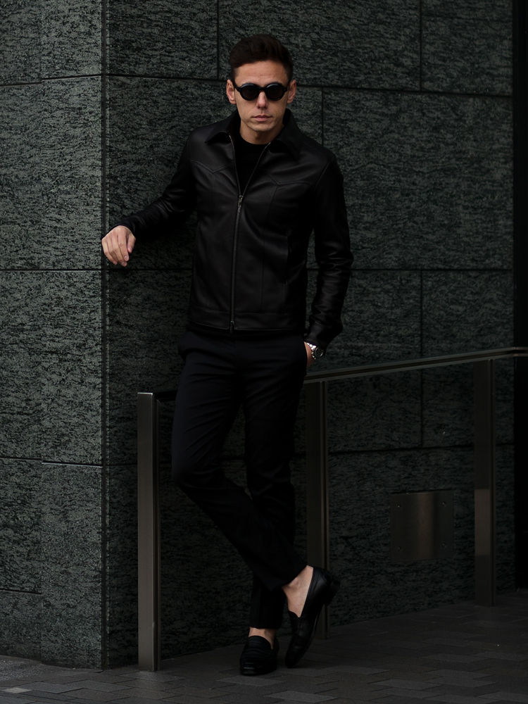 コチラのモデル「JACK」はブルゾンタイプのシングルレザージャケット。タイトフィットな細身のシルエットを採用。デニムジャケットの3rdタイプのデザインはスタイルを選ばないスタンダードなアイテムです。レザーには世界最高水準のスペイン産のラムレザーを採用しています。美しい光沢と軟らかな肌触りのスペインラムを0.5mmの厚みに仕上げ軽さと着心地の良いレザーに仕上げています。裏地にはキュプラサテンライニングを採用。デザイナーの長年に渡る経験と多くのプロダクトのディレクションを経て作り出されるハイエンドな大人のレザージャケットです。