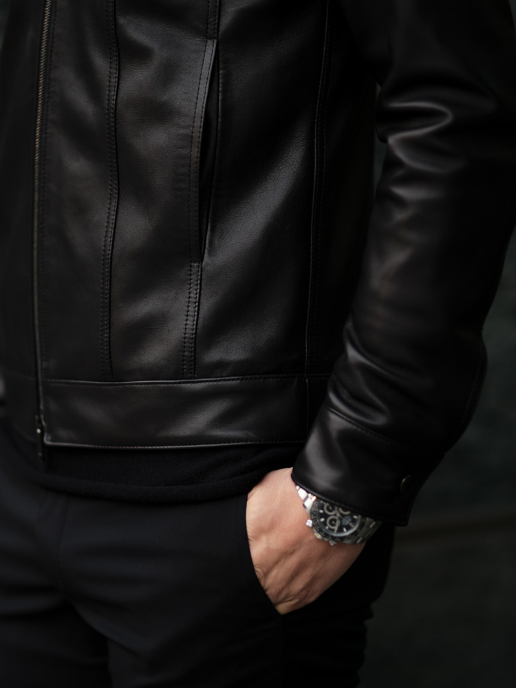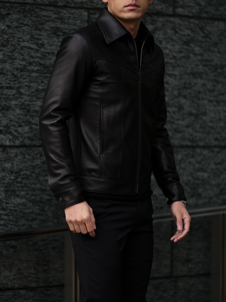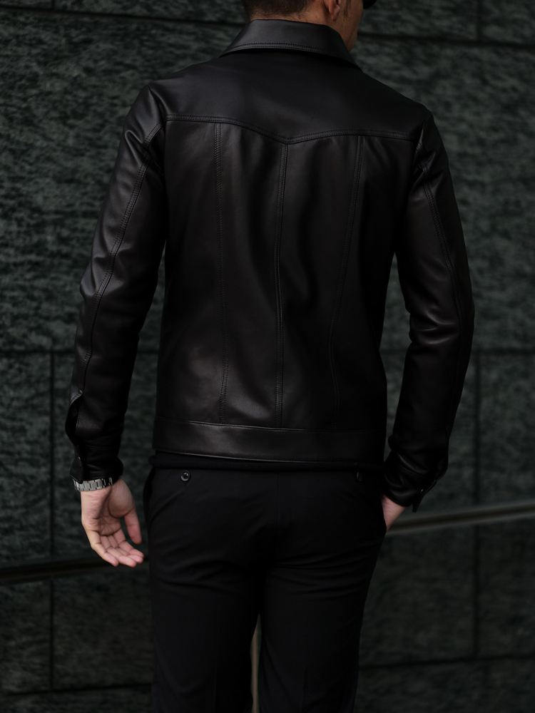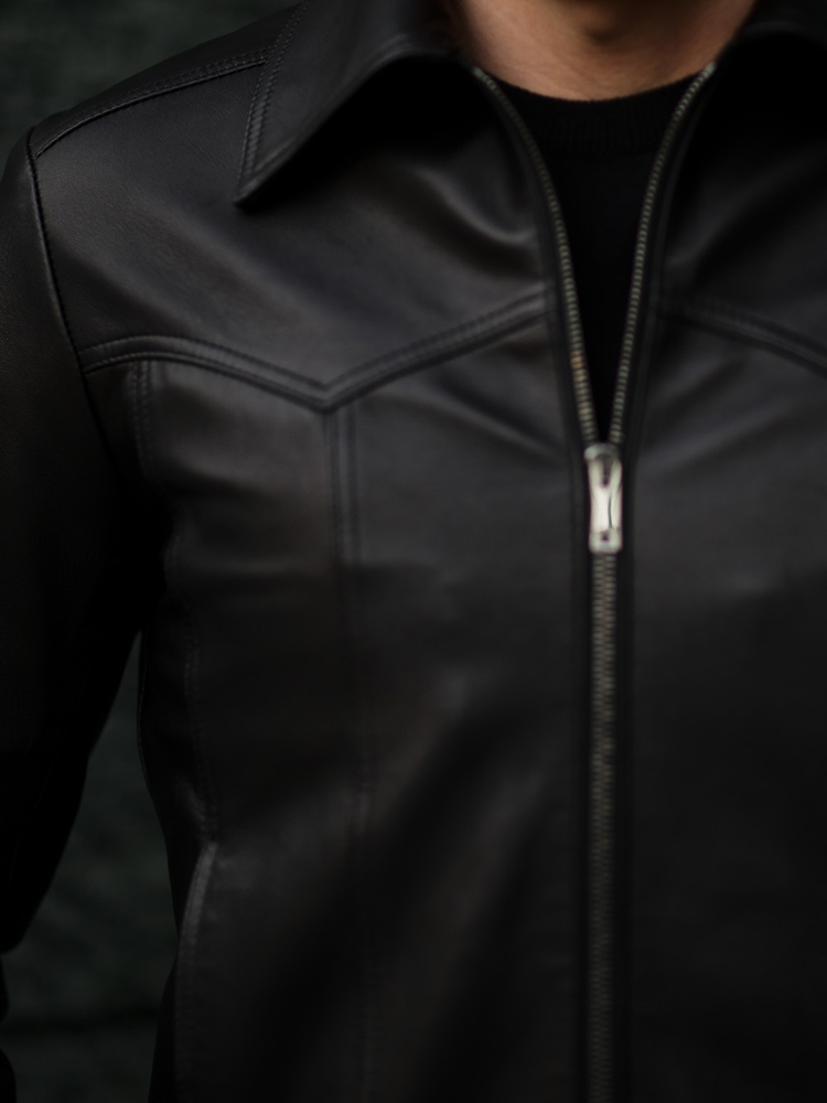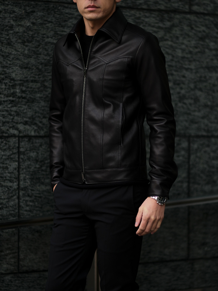 コチラのモデル「JACK」はブルゾンタイプのシングルレザージャケット。タイトフィットな細身のシルエットを採用。デニムジャケットの3rdタイプのデザインはスタイルを選ばないスタンダードなアイテムです。レザーには世界最高水準のスペイン産のラムレザーを採用しています。美しい光沢と軟らかな肌触りのスペインラムを0.5mmの厚みに仕上げ軽さと着心地の良いレザーに仕上げています。裏地にはキュプラサテンライニングを採用。デザイナーの長年に渡る経験と多くのプロダクトのディレクションを経て作り出されるハイエンドな大人のレザージャケットです。