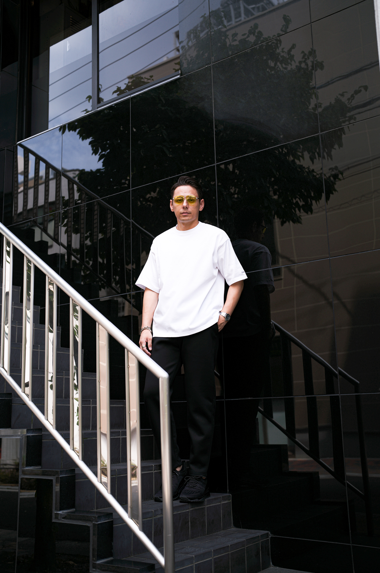 リラックス感のあるフィッティングに、太番手のUSAコットンの糸を使用。