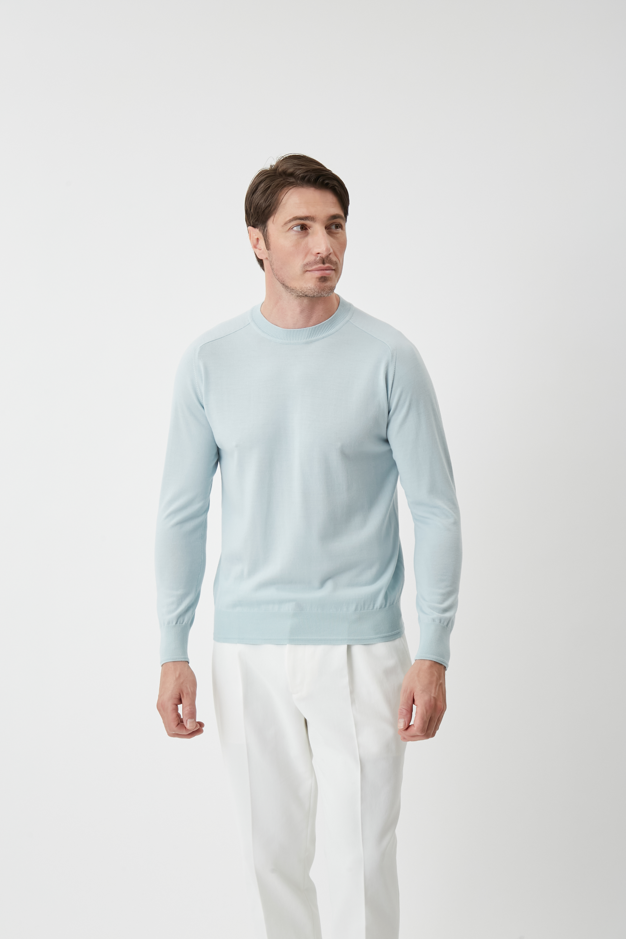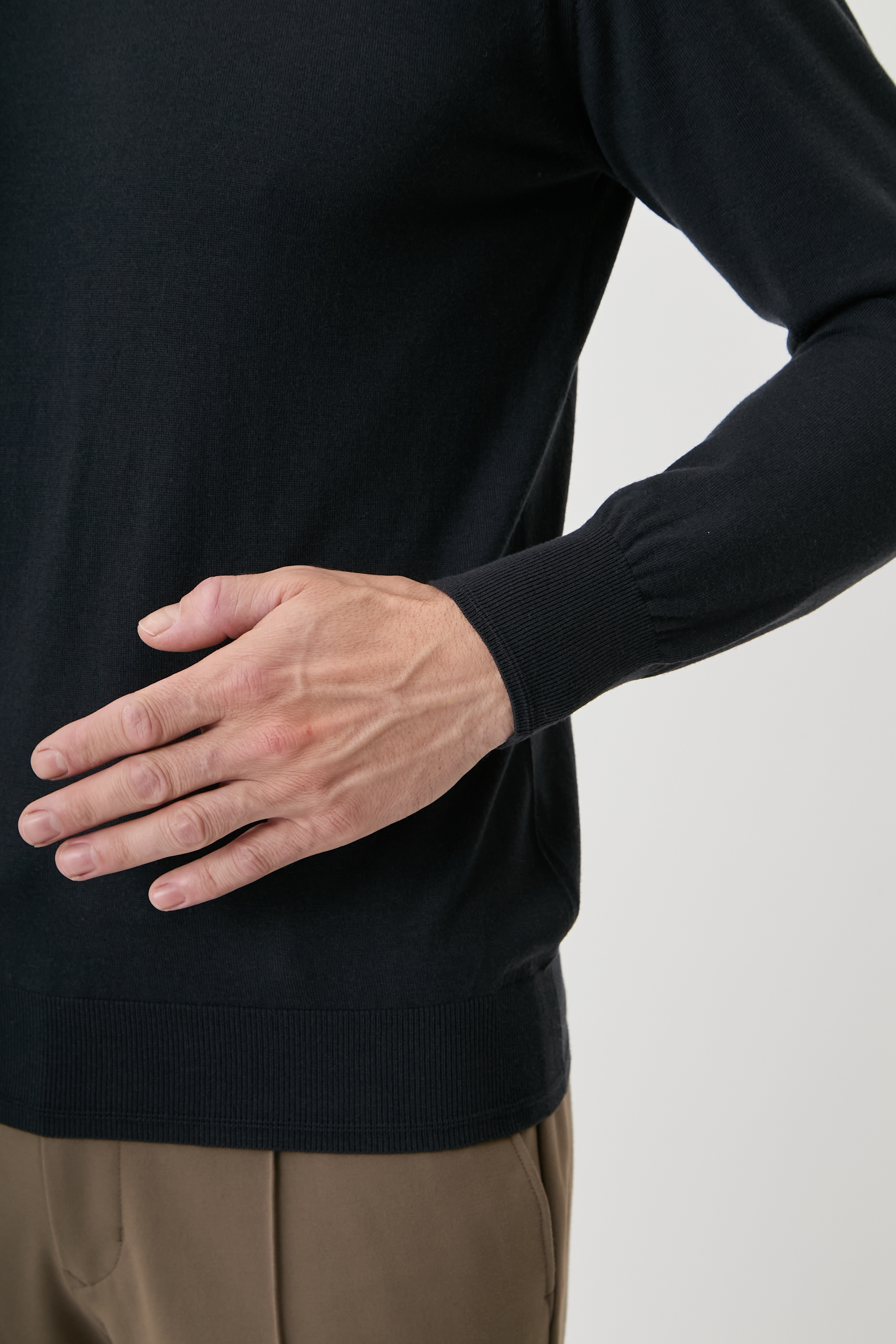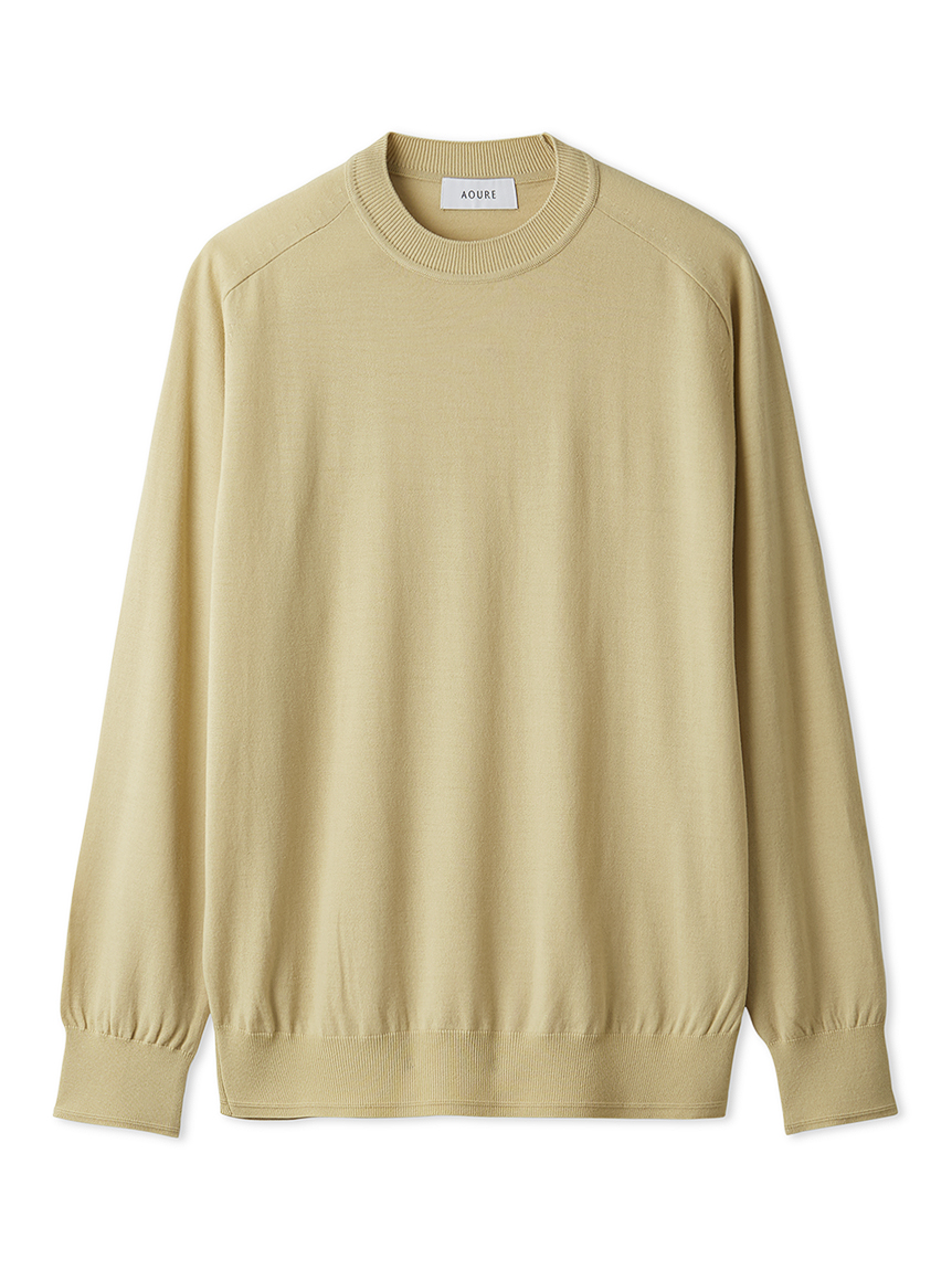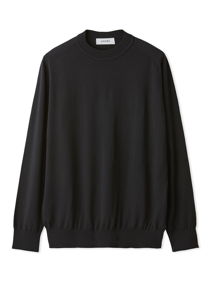 上質なウールならではの光沢と発色を活かした、ハイゲージクルーネックニット。