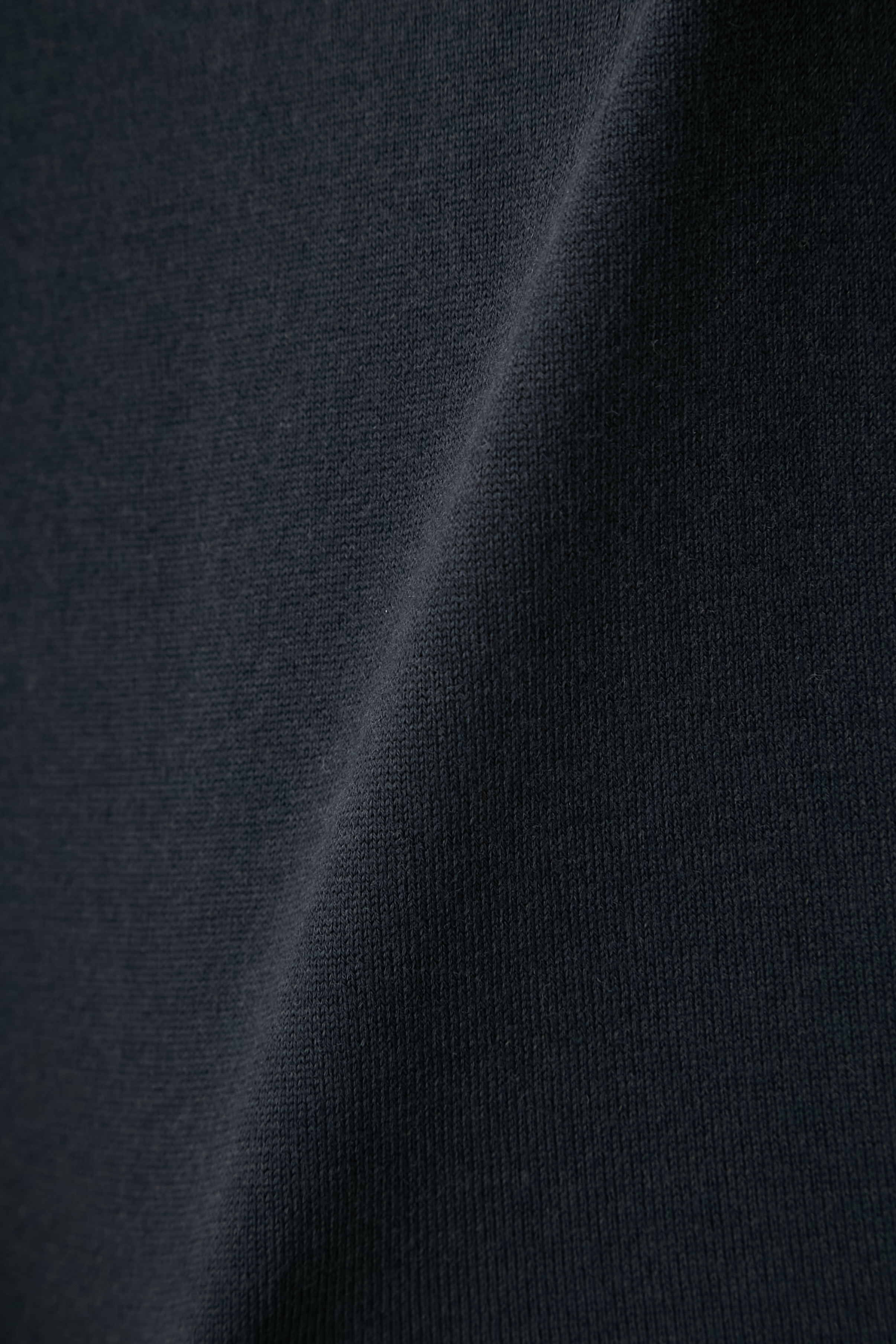 ビジネスにもカジュアルにもなじむよう、衿リブにはわずかに厚みのあるゲージを採用し、型崩れしにくく、かつ控えめな主張を持たせています。