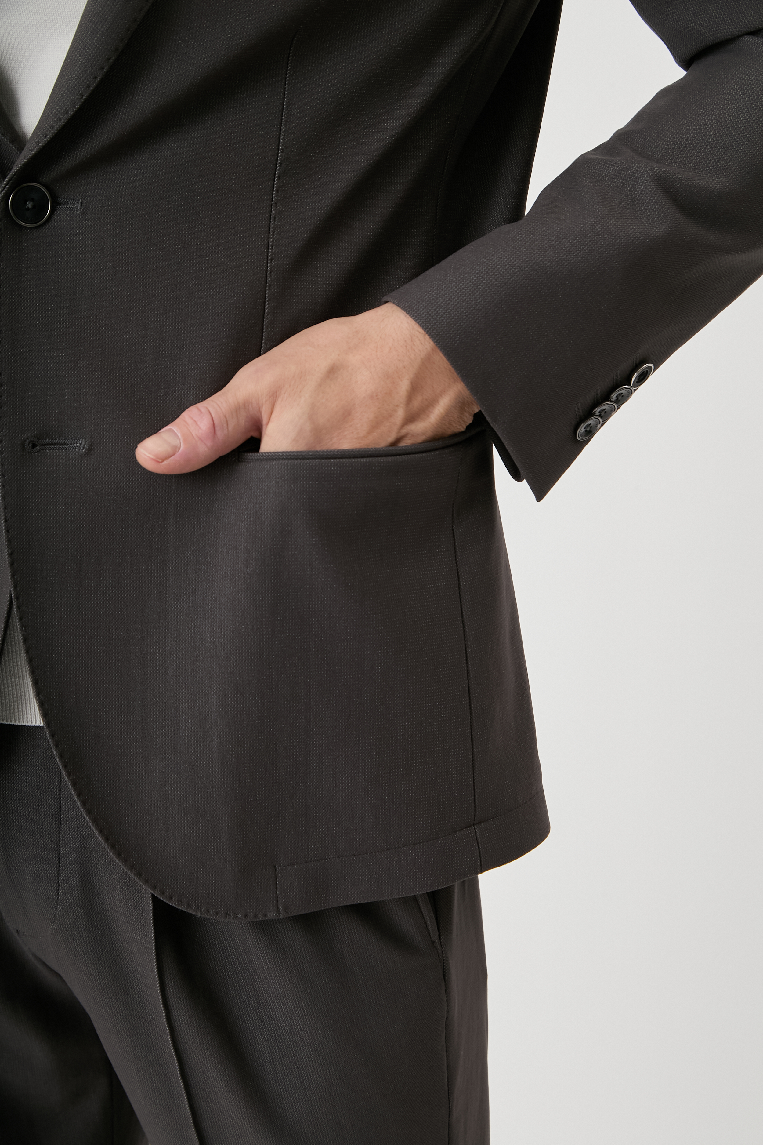 また、仕立て映えする上品な表面感は、スタイリッシュさに加え、快適な着用感を実現。