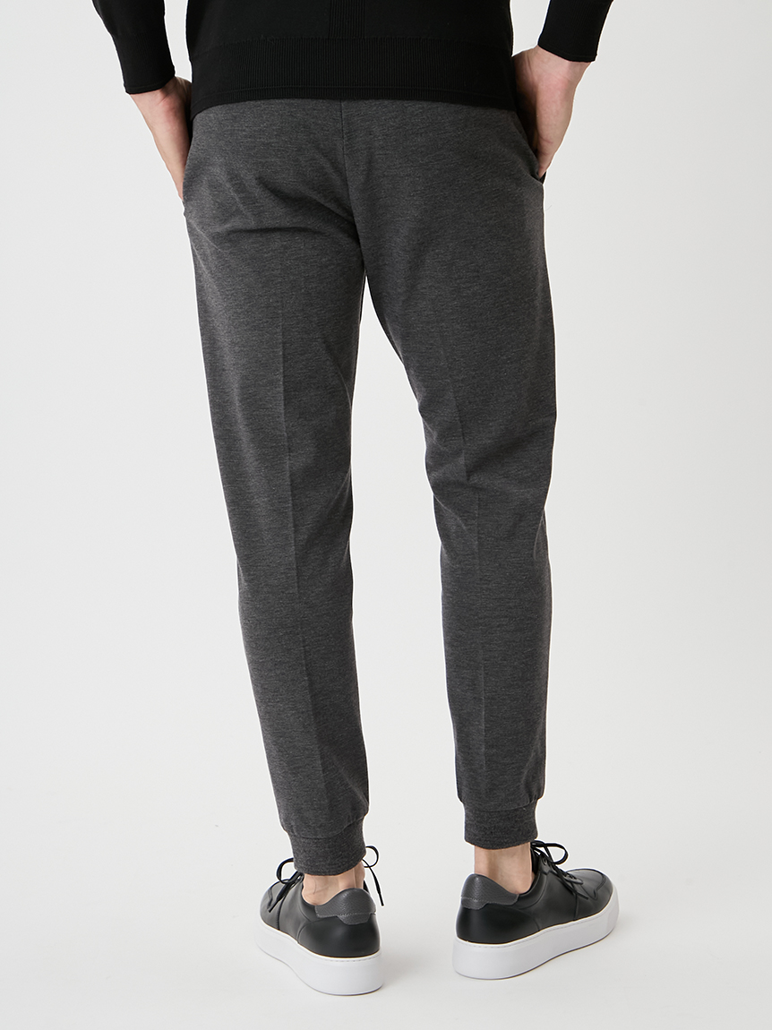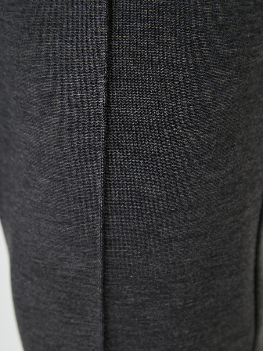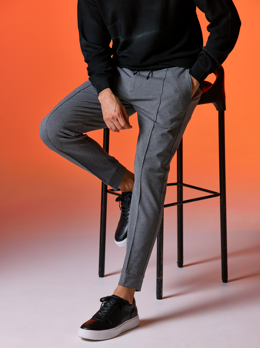 すっきりとしたテーパードシルエットとピンタックのセンタークリースが脚を美しく見せ、