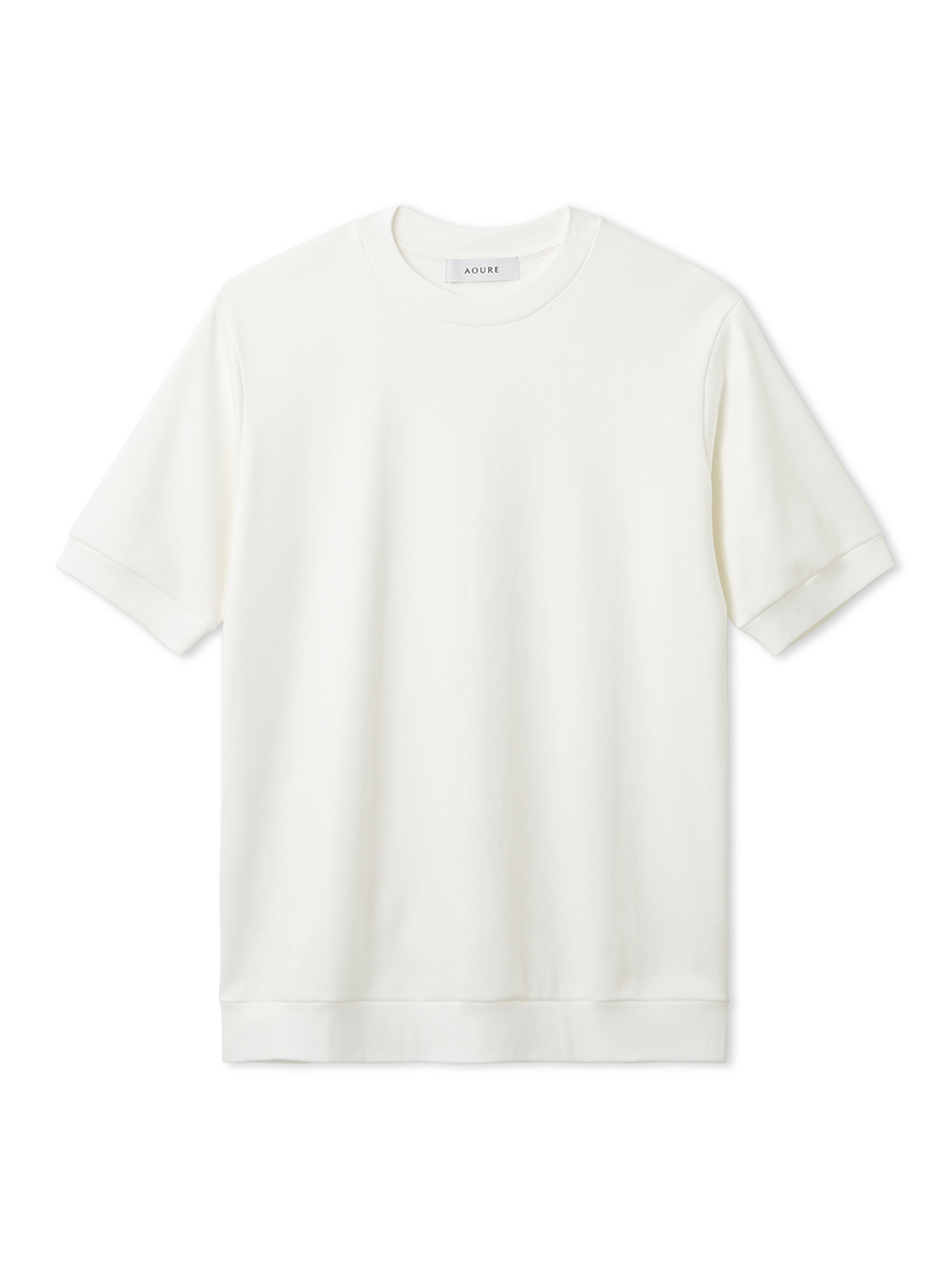 包み込まれるような柔らかさをもった半袖Tシャツ。裾と袖口をリブデザインにして、リラックスさの中にもスッキリとした印象で着れるように工夫しています。適度にリラックスさを感じるサイジングに設計。細めから少し緩めのボトムまで合わせることができる嬉しい一枚となっています。縫製も直接肌にあたる内側の縫代を極力なくす特殊なテクニックを入れ、こだわり抜いたTシャツになっています。普通のTシャツとは一線を画す上品な顔をもったデイリーに着れる一枚となります。