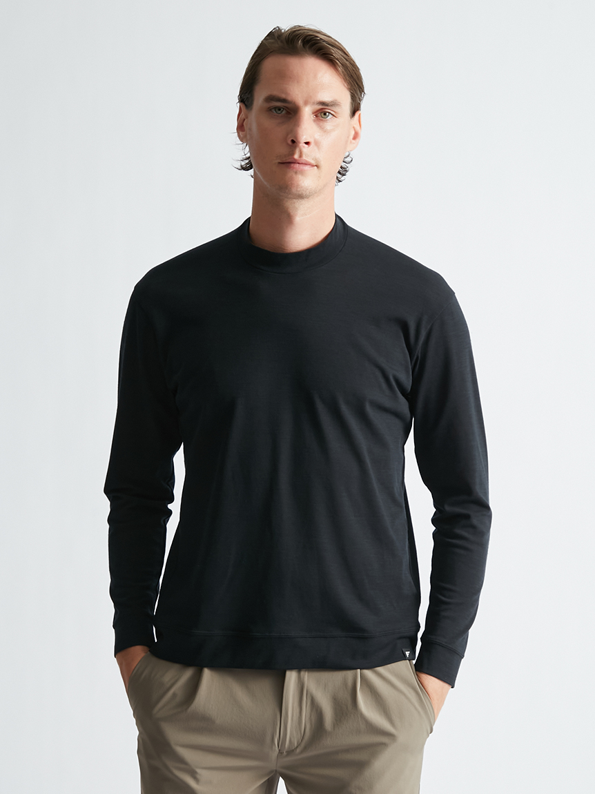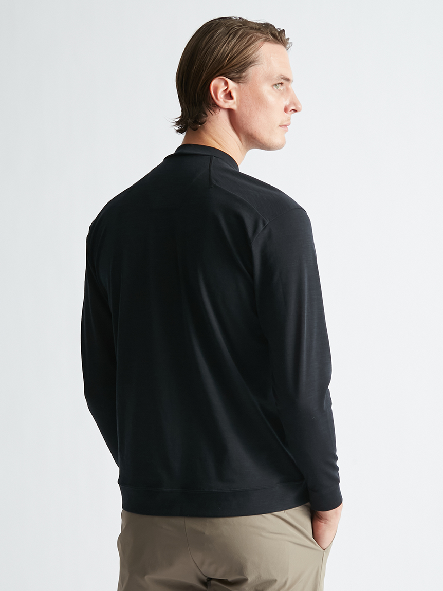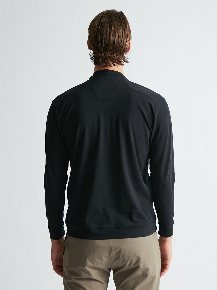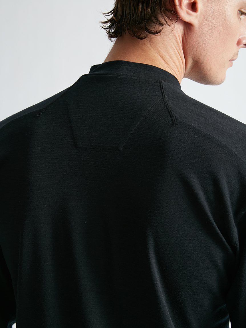 世界初※1のメリノウール W認証※2を受けたミズノ独自の『 365オールインワン』素材 を使用し、上品な着用感と汗をかいてもサラっと快適な着心地を提供します。洗濯・乾 燥機も使用可能でお手入れも楽です。柔らかな肌触り、高い通気性と吸水速乾性を備え、春夏はジャケットのインナーとして、秋冬はアンダーウエアとして活躍します。