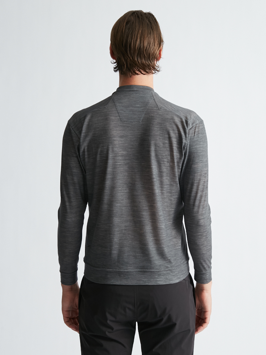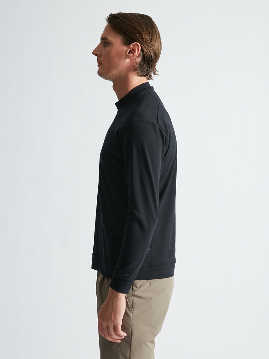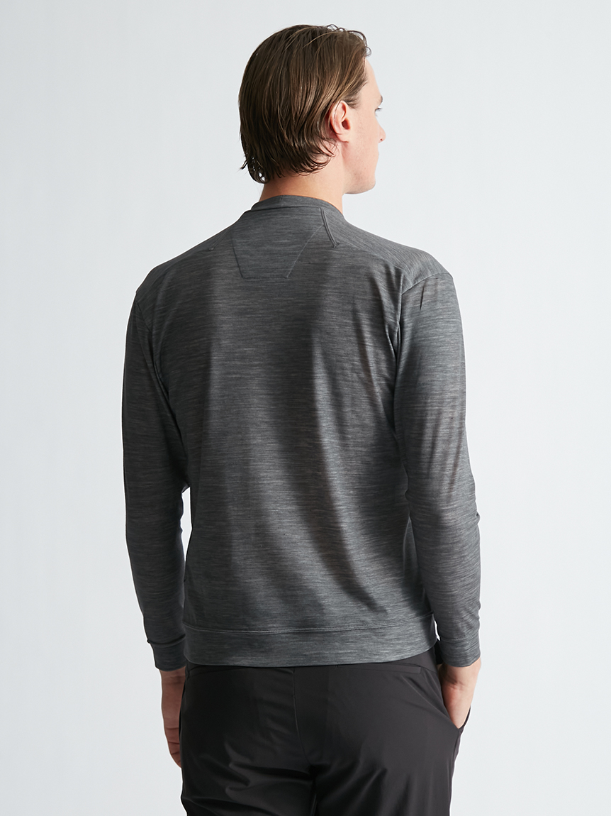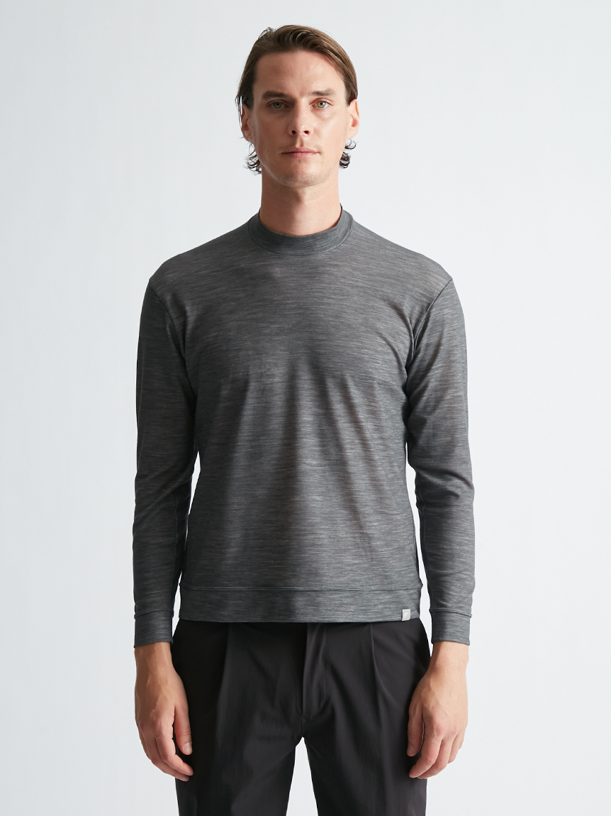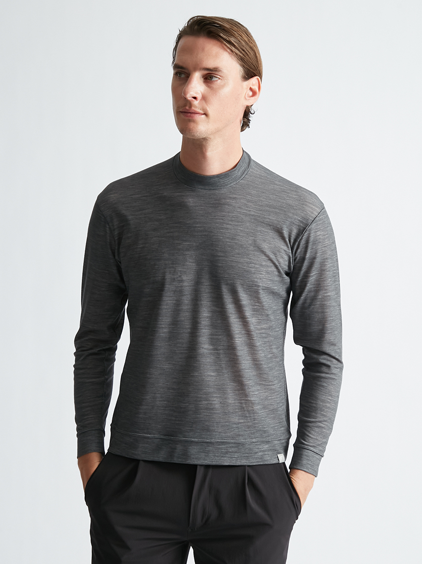 世界初※1のメリノウール W認証※2を受けたミズノ独自の『 365オールインワン』素材 を使用し、上品な着用感と汗をかいてもサラっと快適な着心地を提供します。洗濯・乾 燥機も使用可能でお手入れも楽です。柔らかな肌触り、高い通気性と吸水速乾性を備え、春夏はジャケットのインナーとして、秋冬はアンダーウエアとして活躍します。