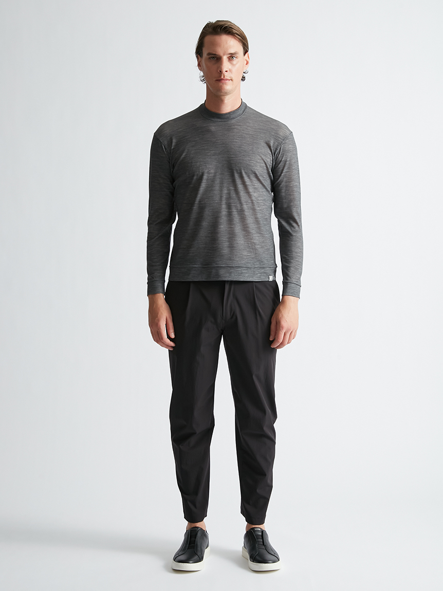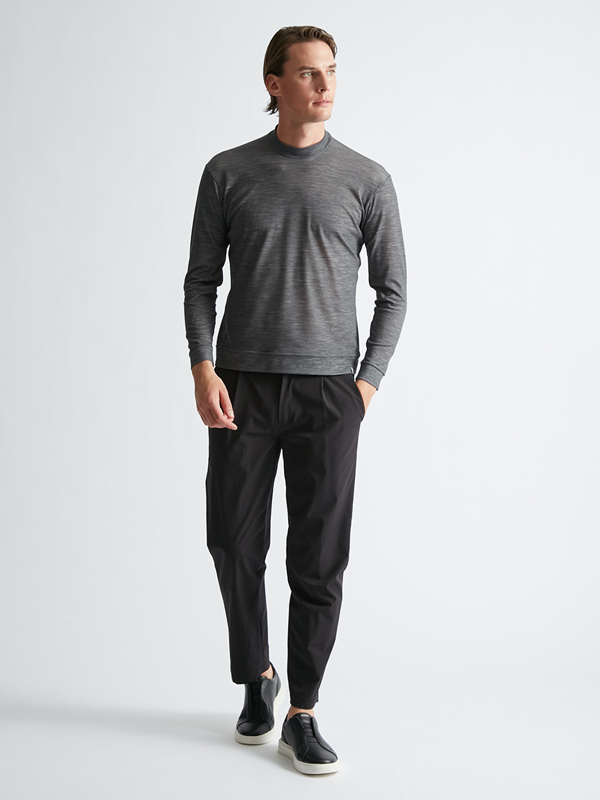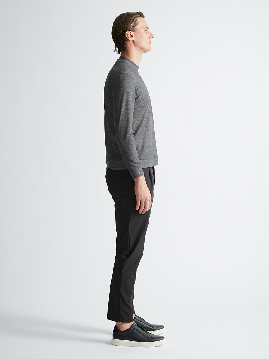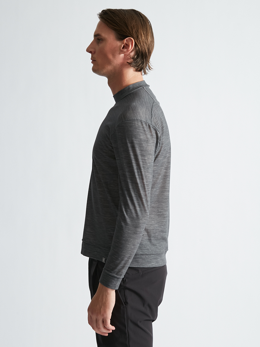 世界初※1のメリノウール W認証※2を受けたミズノ独自の『 365オールインワン』素材 を使用し、上品な着用感と汗をかいてもサラっと快適な着心地を提供します。洗濯・乾 燥機も使用可能でお手入れも楽です。柔らかな肌触り、高い通気性と吸水速乾性を備え、春夏はジャケットのインナーとして、秋冬はアンダーウエアとして活躍します。