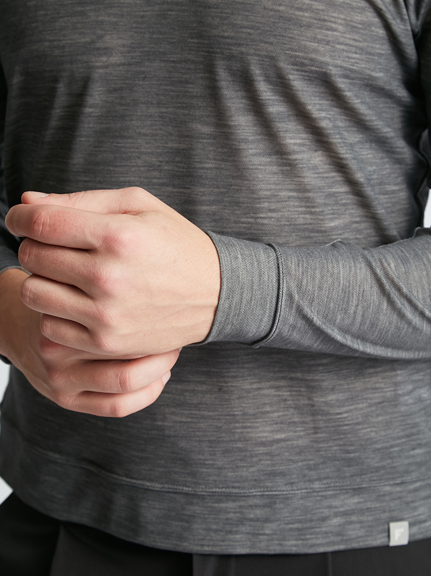 生地の表面を高品質な天然素材で知られるメリノウール、肌面をメッシュ状のポリエステルで 作るミズノ独自の二層構造を採用した世界初 ※1 ウールマークW 認証※2 を受けた『365 オールインワン』素材を使用。