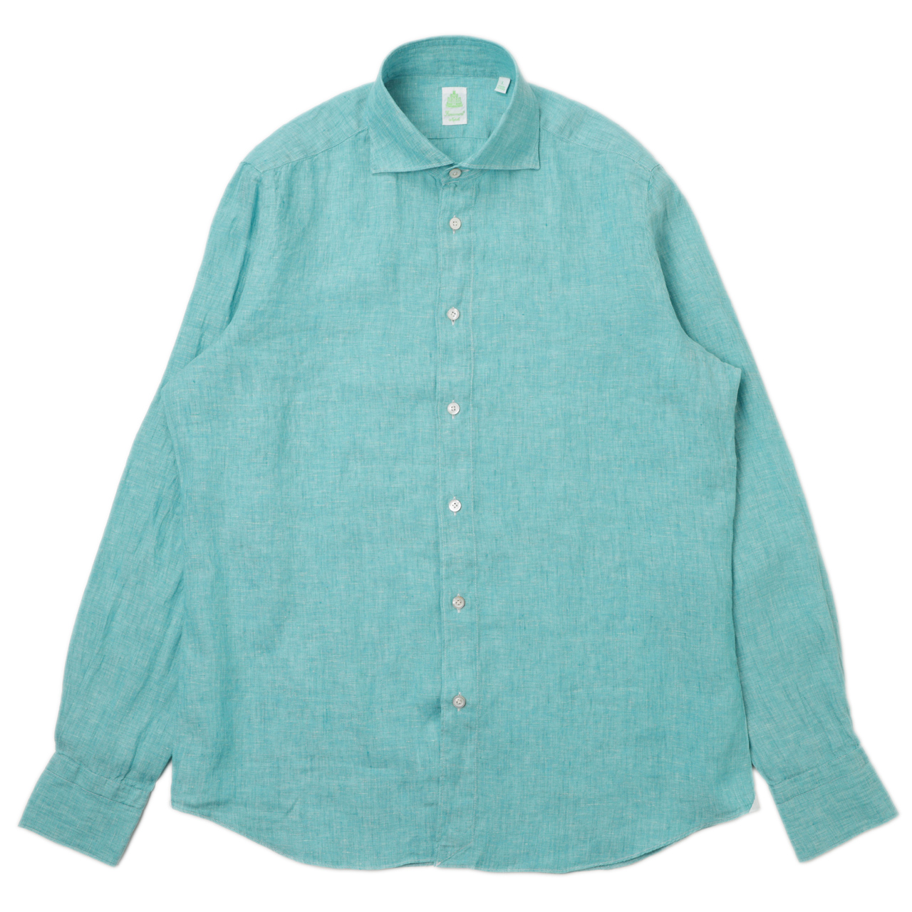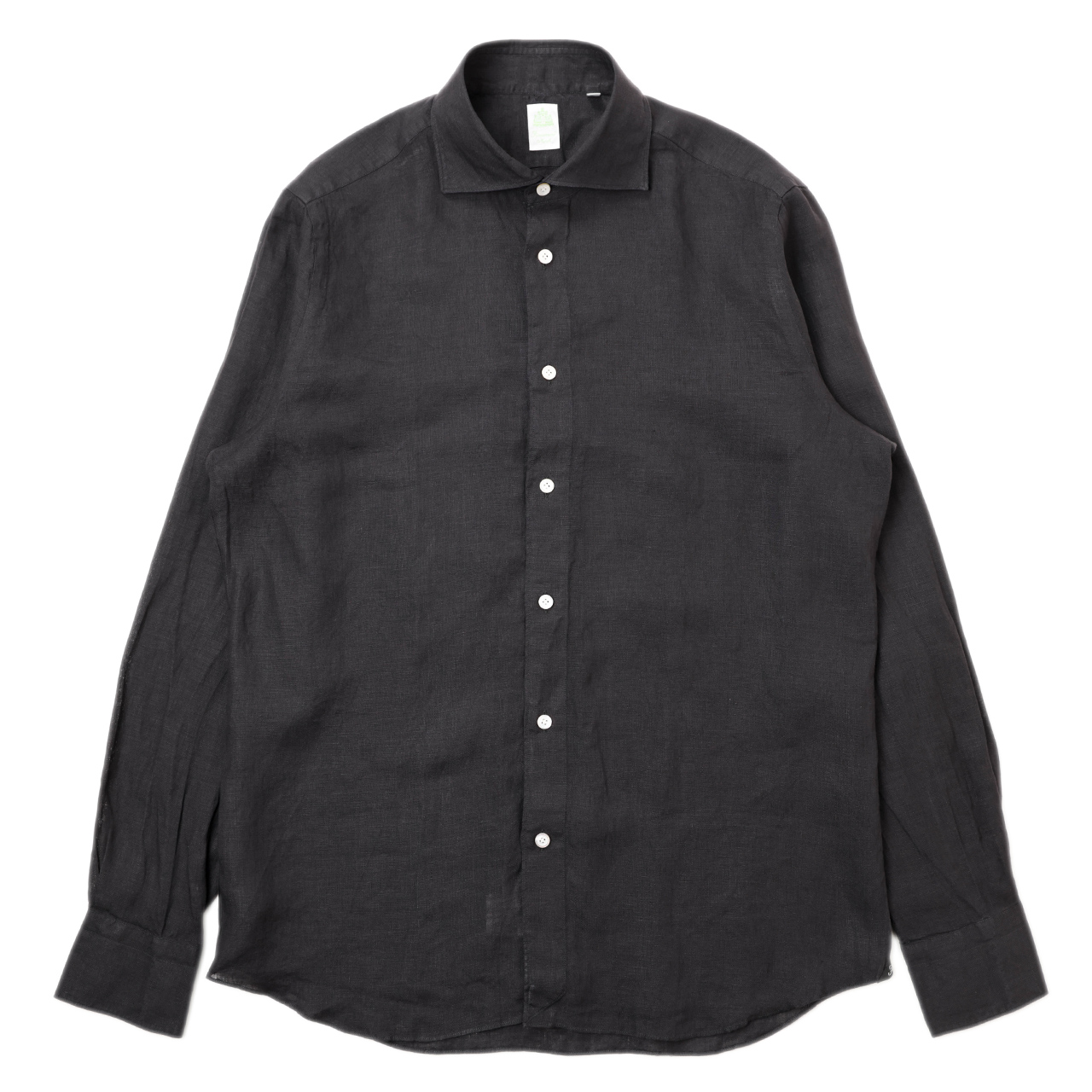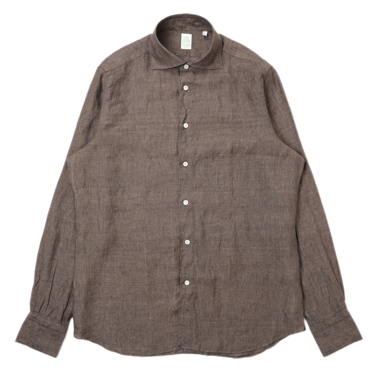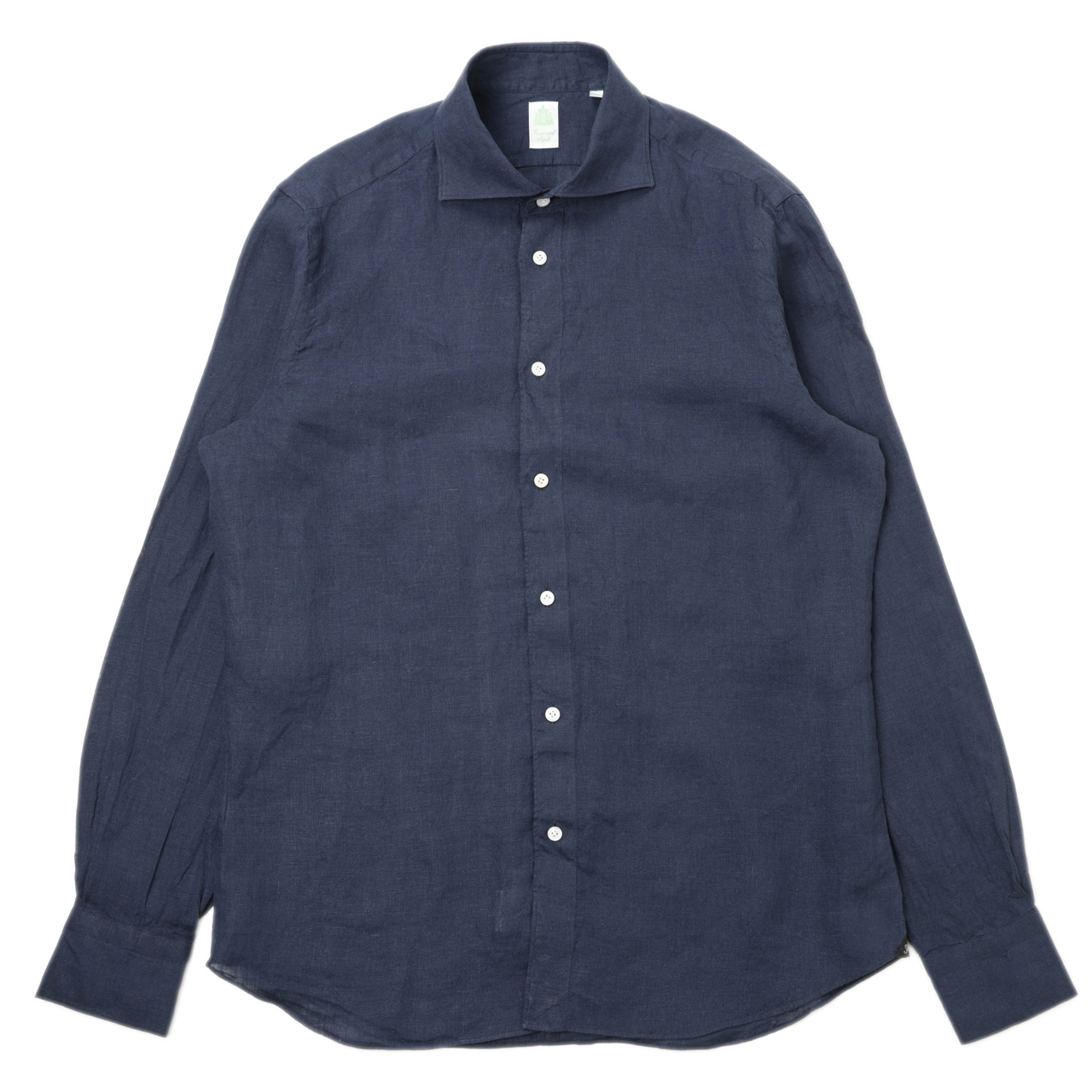コットンピンオックスのドレス素材を使い、緑タグのスポーツシャツ仕立てにしているのですが、しっかりドレス顔なところはフィナモレらしいところ。このままタイドアップをしても襟元を端正に引き立ててくれます。
