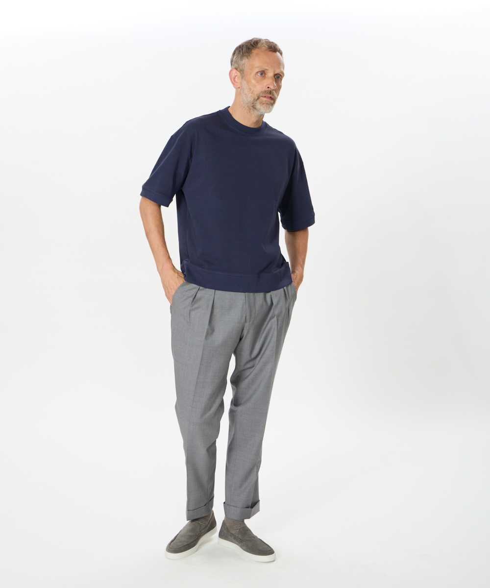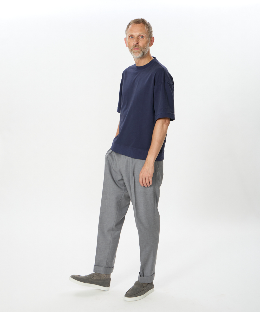 腰回りに程よいゆとりを持たせ、裾に向かって美しくテーパードするシルエットは、タイムレスでありながら洗練された印象を与える、“モダンクラシック”の名にふさわしい仕上がりです。