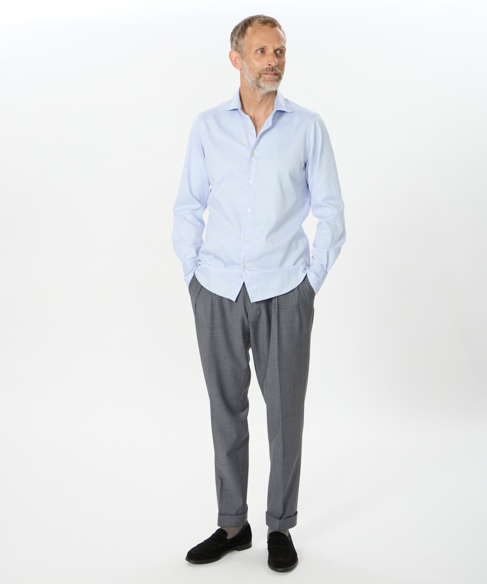 襟型"SIMONE(シモーネ)"は、Finamoreを代表するカッタウェイカラー。