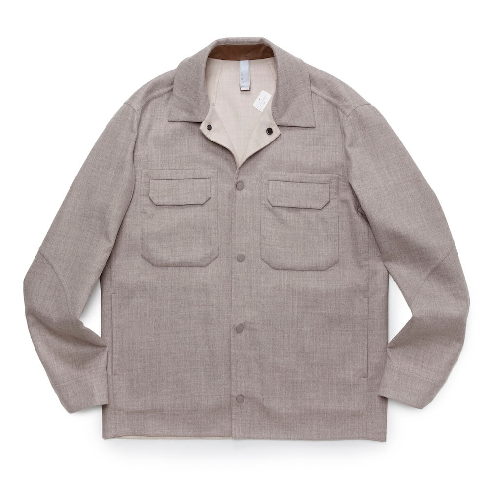 袖付け・ボタン付け・ガゼット付けの3工程をハンドメイドで仕上げ、手縫いならではの柔らかな表情と、動きを妨げない独自のパターン設計により、他にはない快適な着心地を実現。肩幅は通常よりややコンパクトに設計しながら、「いせ込み」と前振りの袖付けを組み合わせることで、十分な可動域を確保しており、見た目のシャープですっきりとした印象をあたえますが、まったくストレスを感じさせない着用感が魅力です。身体に自然にフィットしつつ、程よくリラックスしたシルエットは、タックアウトでも美しく映えるよう計算されており、カジュアルからきちんと感のあるスタイリングまで幅広く対応します。