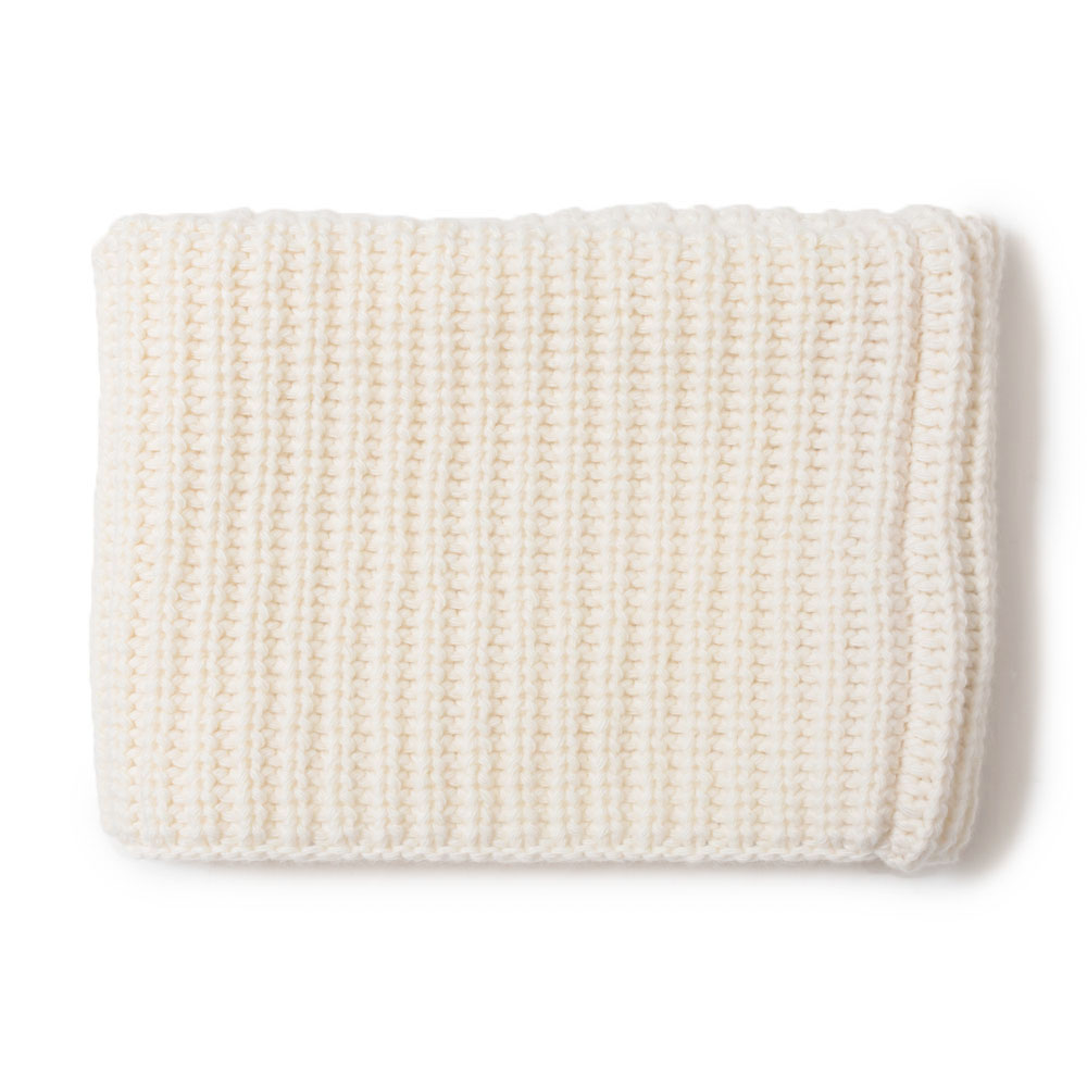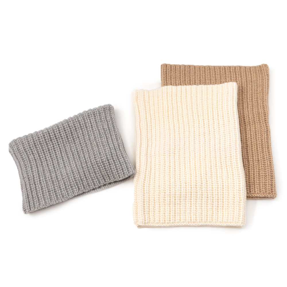シンプルながらも縦のラインがスマートな片畔編のネックウォーマー。