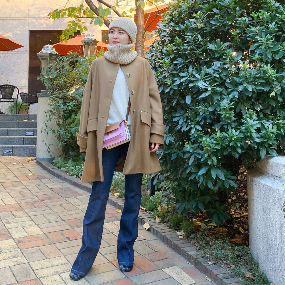 同素材のニットキャップとセットでご着用いただくと、小物使い上級者のスタイリングが完成します。