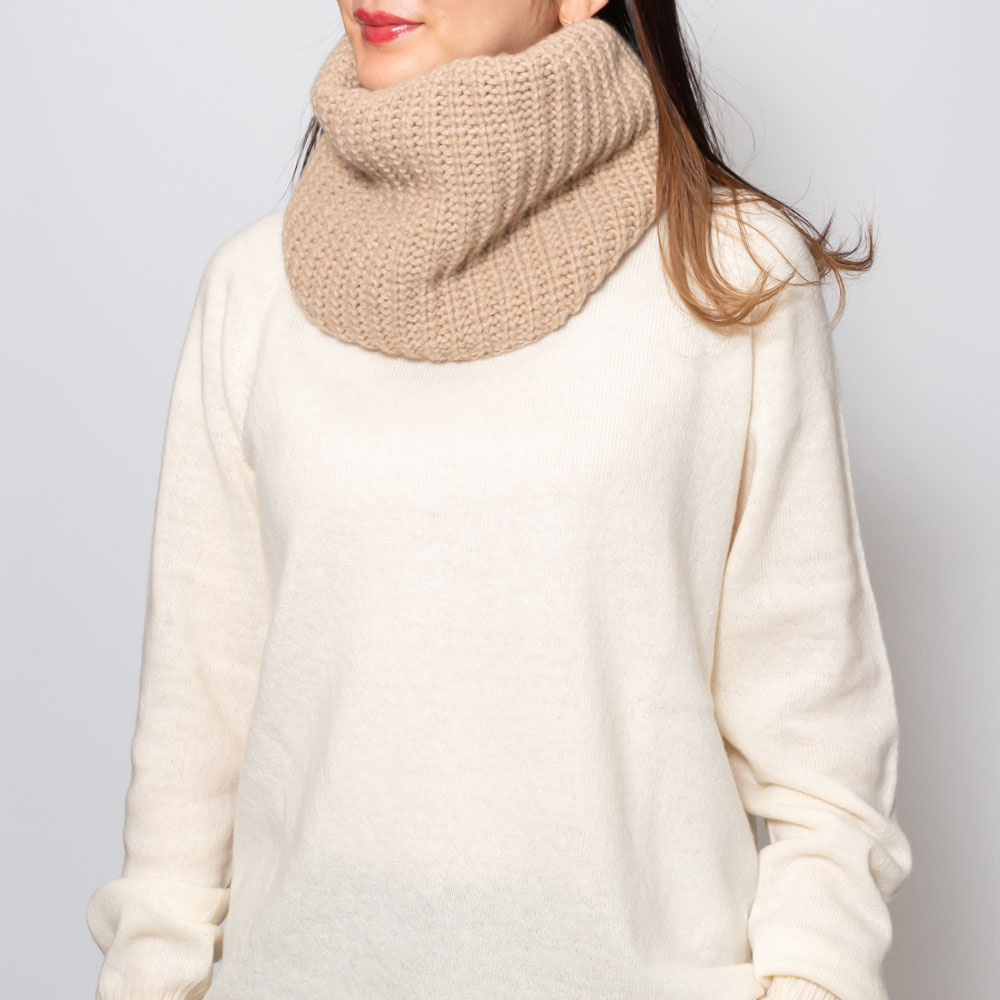 カシミアをブレンドすることでふっくらと柔らかいタッチに仕上がり、暖かく首元を包みこんでくれます。