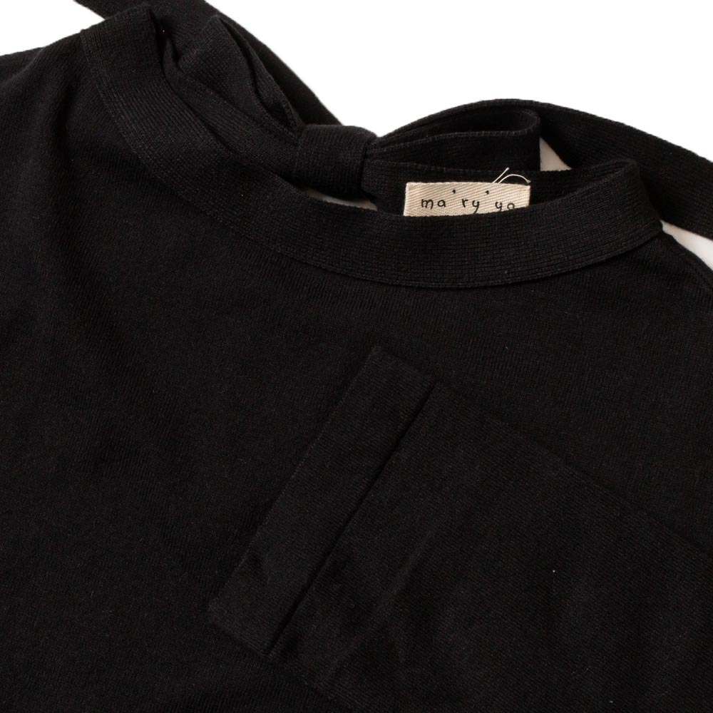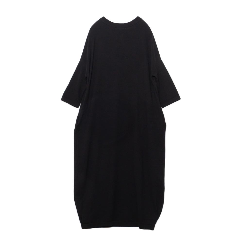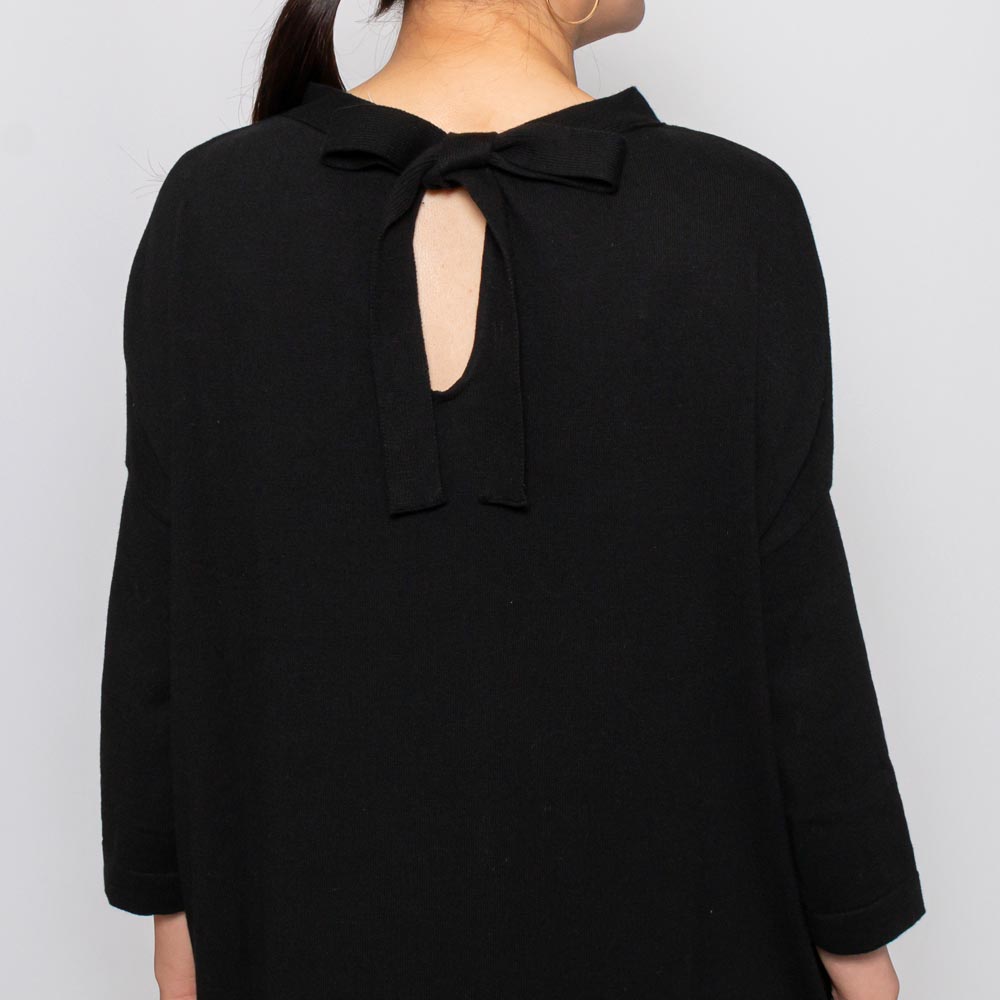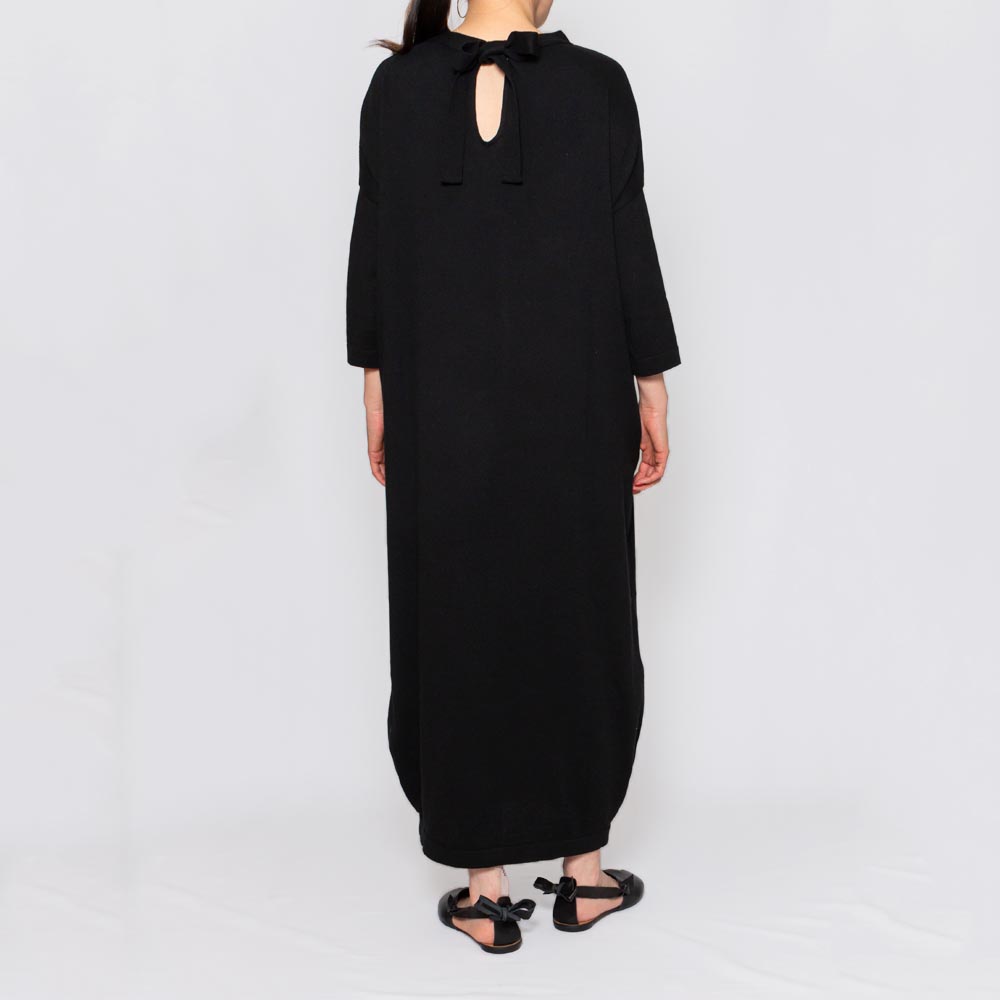 後ろのリボンがワンポイントになったハイゲージニットのワンピース。