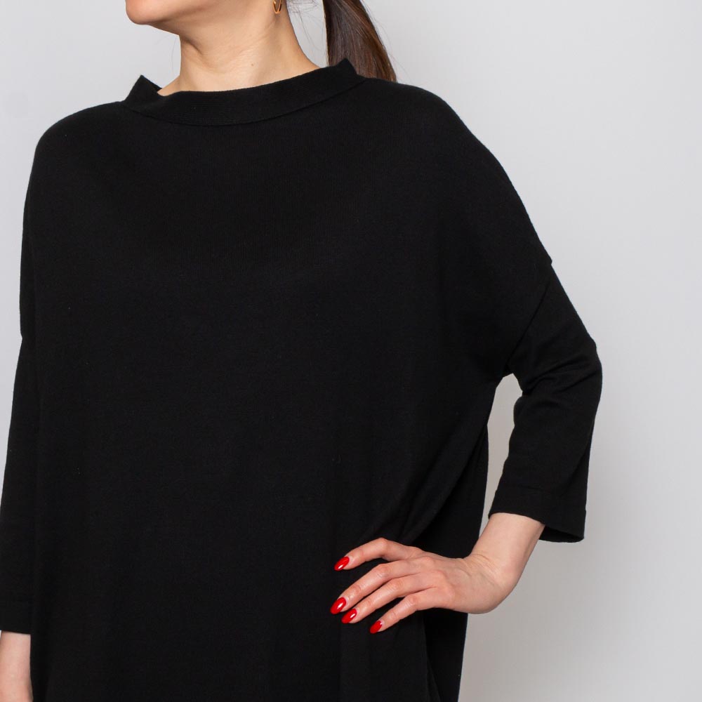 真夏でも着用が可能な薄手の軽いニットで、柔らかくしっとりとした優しい手触りがとても心地よく全身を包みこみます。