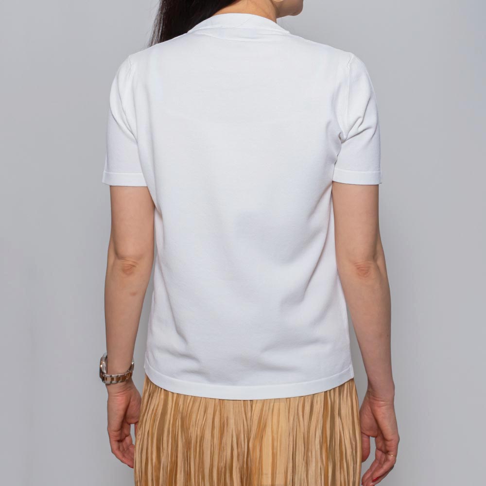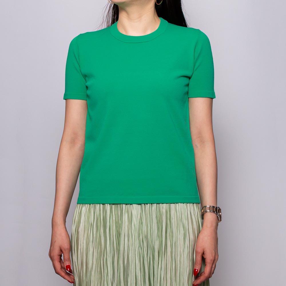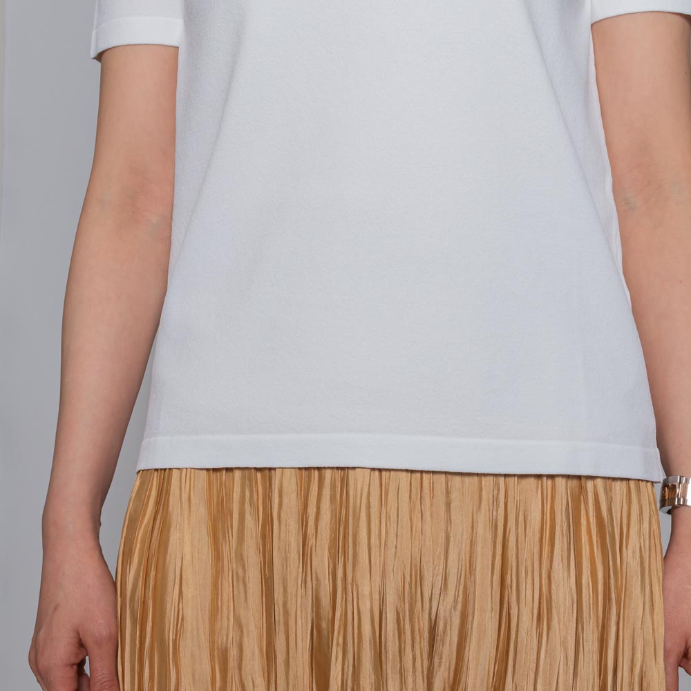 ジャケットやカーディガンのインナーにも重宝するベーシックなアイテムで、カットソーとは少し違った上品な表情が魅力。