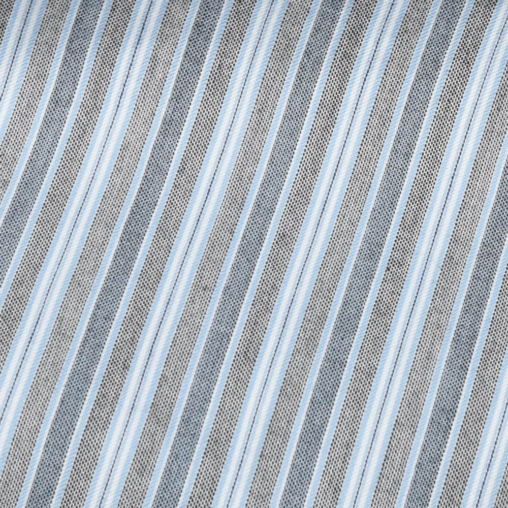 ライトブルーの清涼感に、マルチカラーのストライプがアクセントを加え、華やかさと上品さを兼ね備えた一枚です。