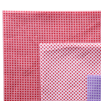 • 左から、レッド(小紋) → ホワイト(レッドドット) → パープル(小紋) → ホワイト(パープルドット) → ネイビー(小紋) → ブルー(ドット)となります