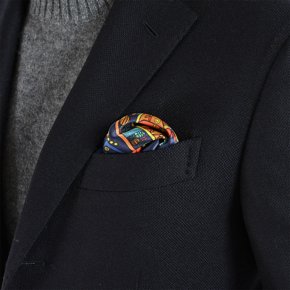 ・B.R.SHOPでは、ベースとトリミング部分の色、チーフ自体のサイズ(約30センチ角)と素材(シルクサテン)を選んで2色にてオーダー。