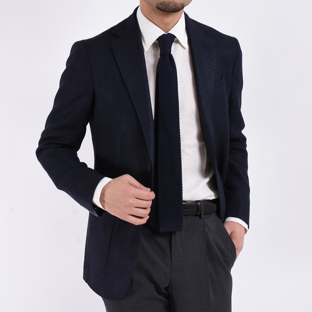 ・豊富なバリエーションを誇る「AVINO Laboratorio Napoletano(アヴィーノ・ラボラトリオ・ナポレターノ)」の襟型の中から、開きの角度が絶妙なイタリアらしいセミワイドカラー"ITALIA"をセレクト。タイドアップしない着方もオススメです。また、ソフトな芯地、ラウンドのカフス、ボタンの形状をB.R.SHOPが指定してオーダー。生地の色によってボタンの色に変化を付けたのもB.R.SHOPのこだわりです。