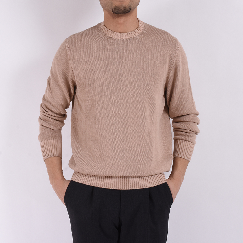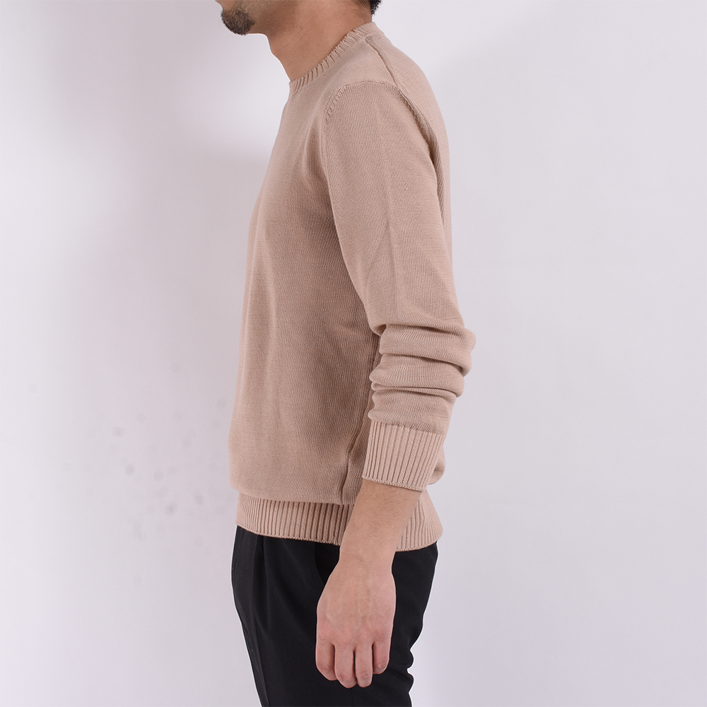 ・世界三大綿の一つに挙げられる高品質なスーピマコットンを使用したミドルゲージ(8ゲージ)のクルーネックニットです。