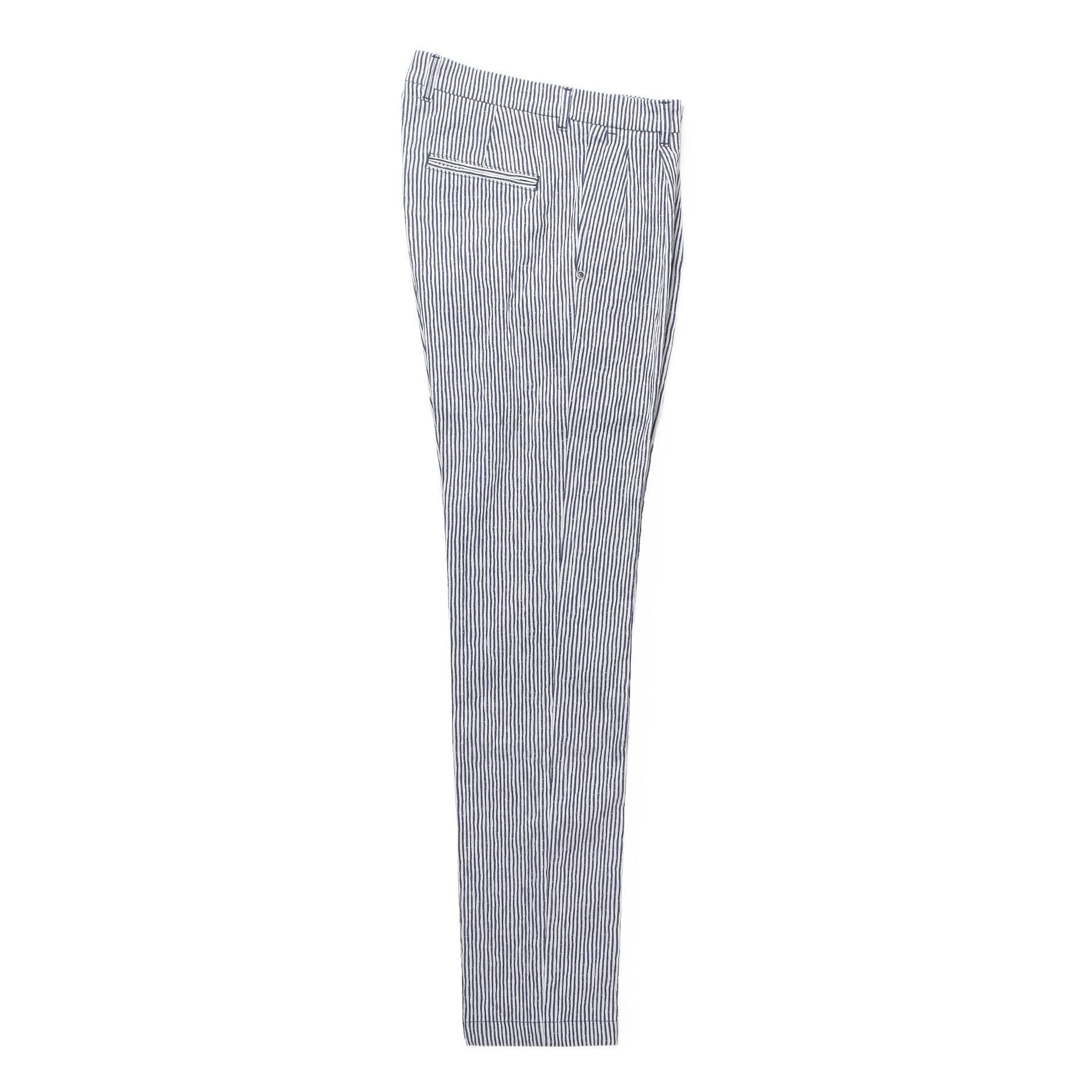 ・シアサッカー特有の凹凸感とストライプのかすれたような入り方が特徴です。さらにびっくりするほどのストレッチ性があるので、サラリとした肌触りとともに快適な穿き心地。