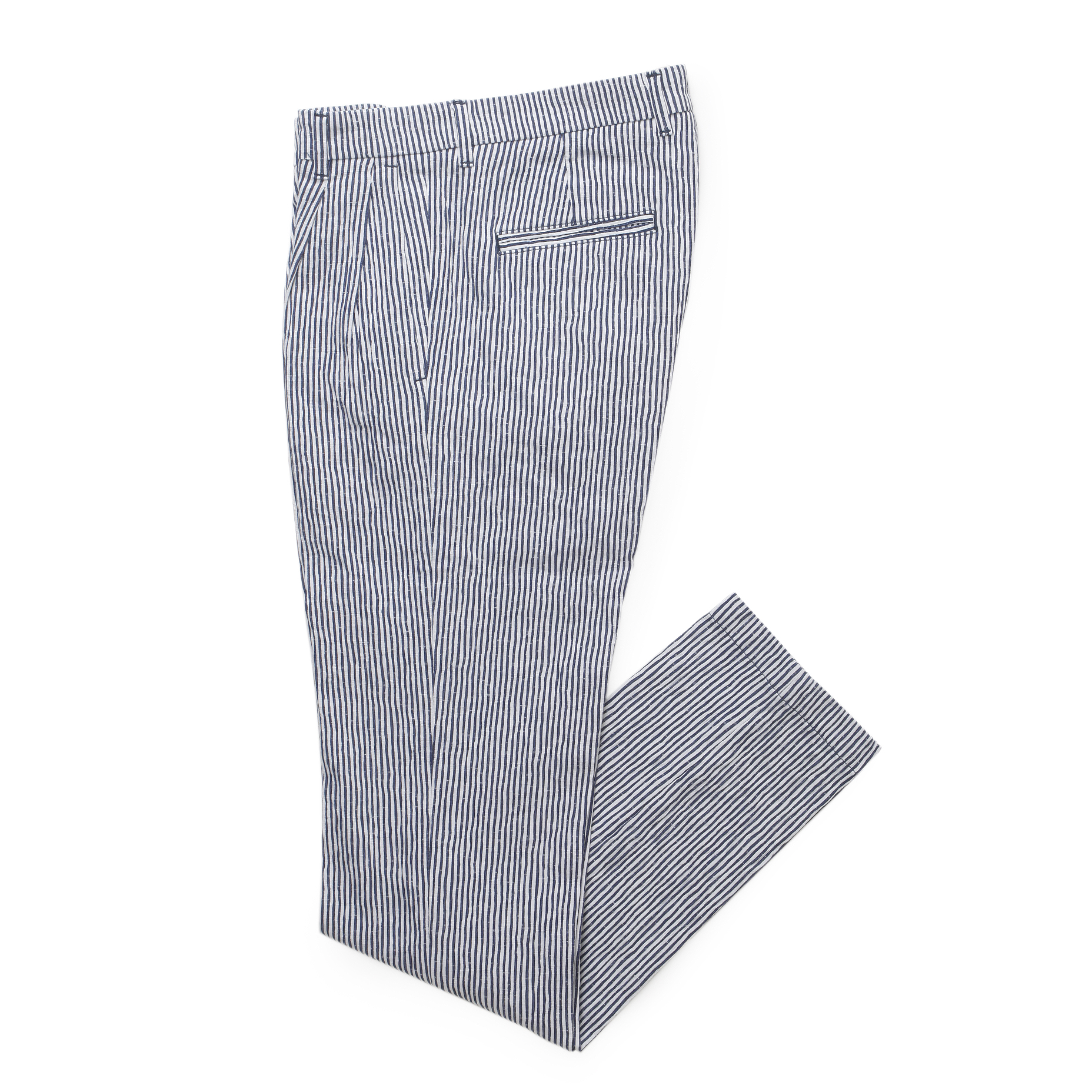 ・生地はストレッチのシアサッカー。ストライプ柄がトレンドとされている中で、今シーズン特に注目を集めています。