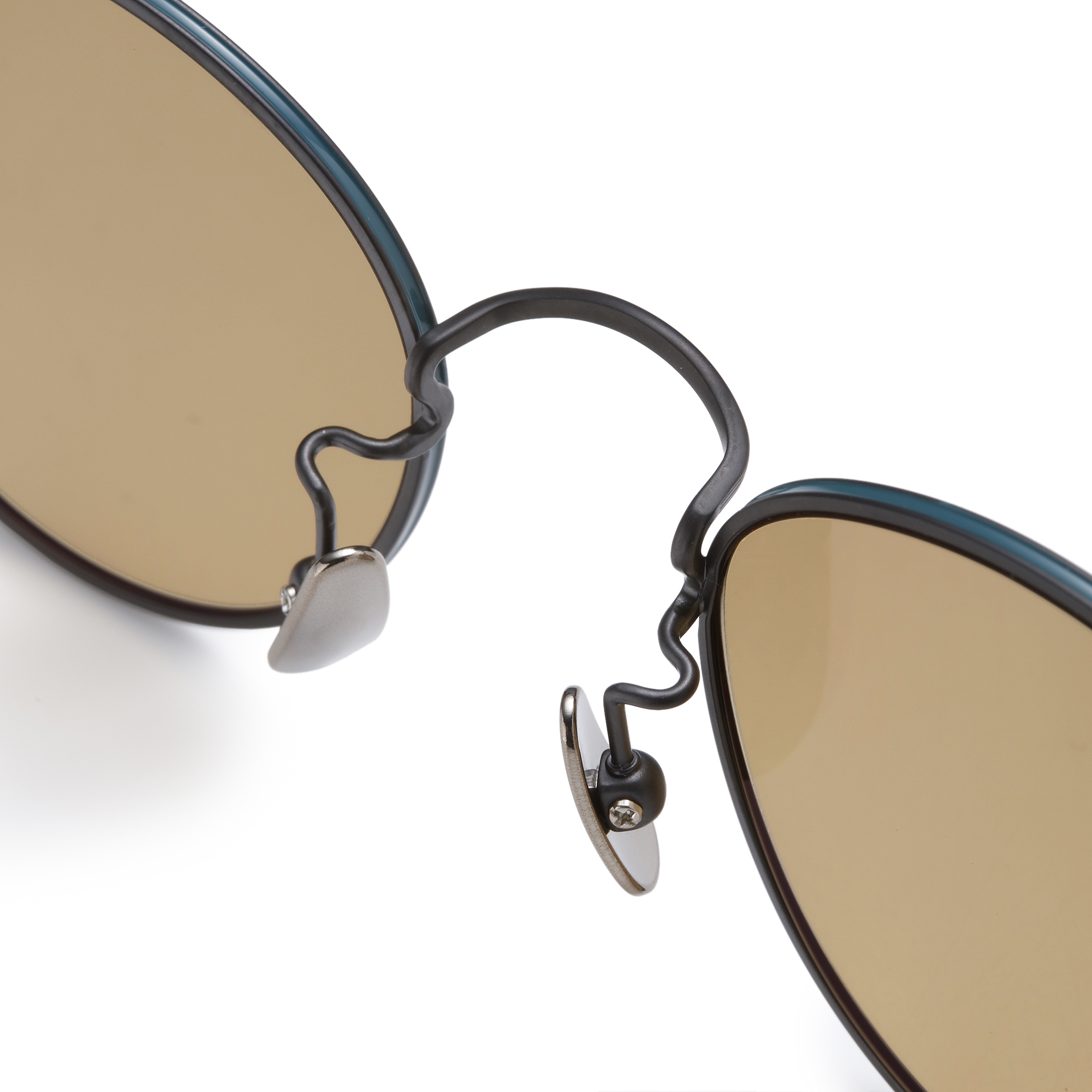 ・リム(レンズ枠)の側面に溝を掘り、七宝職人の手により色が入れられています(ブラックとシルバーはグリーン系、ゴールドはブラウン系)。それにより角度により違った印象に映るのが特徴。