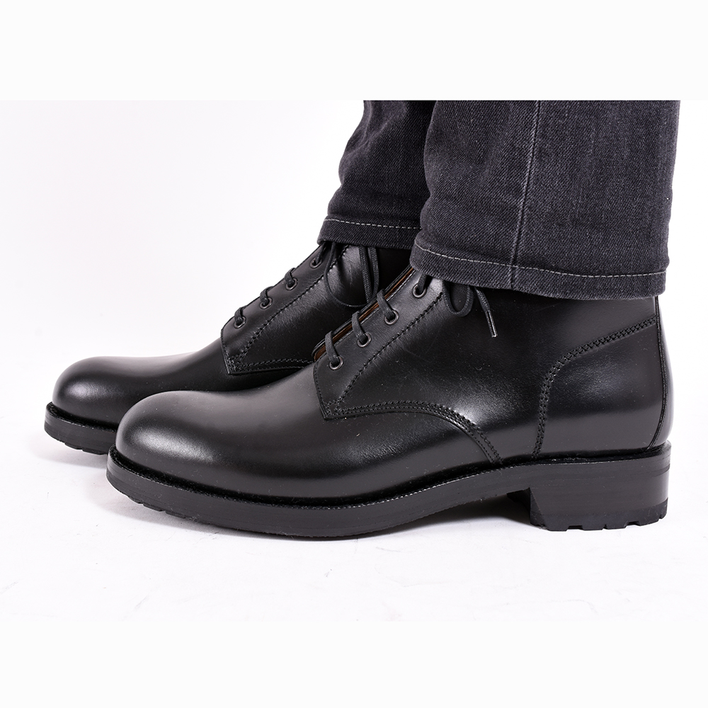 ・アッパーは最高級カーフレザーで名を馳せるフランスはデュプイ社のANILOU(艶つけされた靴用アニリンカーフ)を採用。艶やかなカーフレザーを載せることで大人も履けるブーツに格上げされています。