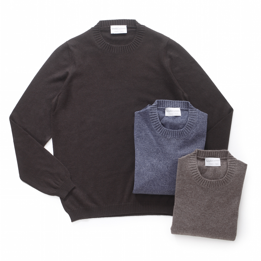 ・カシミアを代表とする素材の良質さ、フィット感やサイジングの良さ、といった部分で、B.R.SHOPのラインナップから「Settefili Cashmere(セッテフィーリ カシミア)」は絶対に外せないブランドのひとつ。ベーシックで長く着られるデザインが多い同ブランドですが、B.R.SHOPが考えるスタンダード且つラグジュアリーなアイテムを別注にてご用意しました。こだわったポイントは2つあり、リブ幅と編み地です。