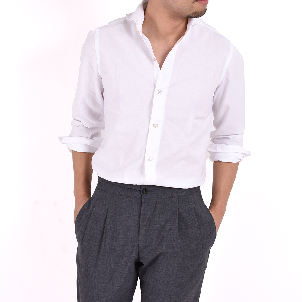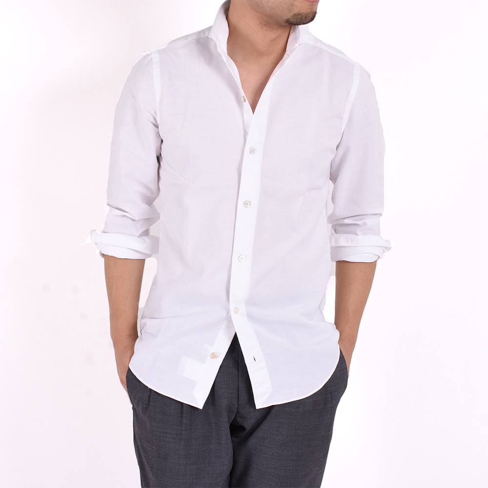 ・狭めな肩幅が特徴的な「Finamore (フィナモレ)」のシャツは、その肩幅からは想像も出来ないほど動き易く、フィット感に長けています。その秘密はいせ込み+前ふりの袖付け。フィット感はありながら、身体にまったくストレスを与えず、極上の着心地です。