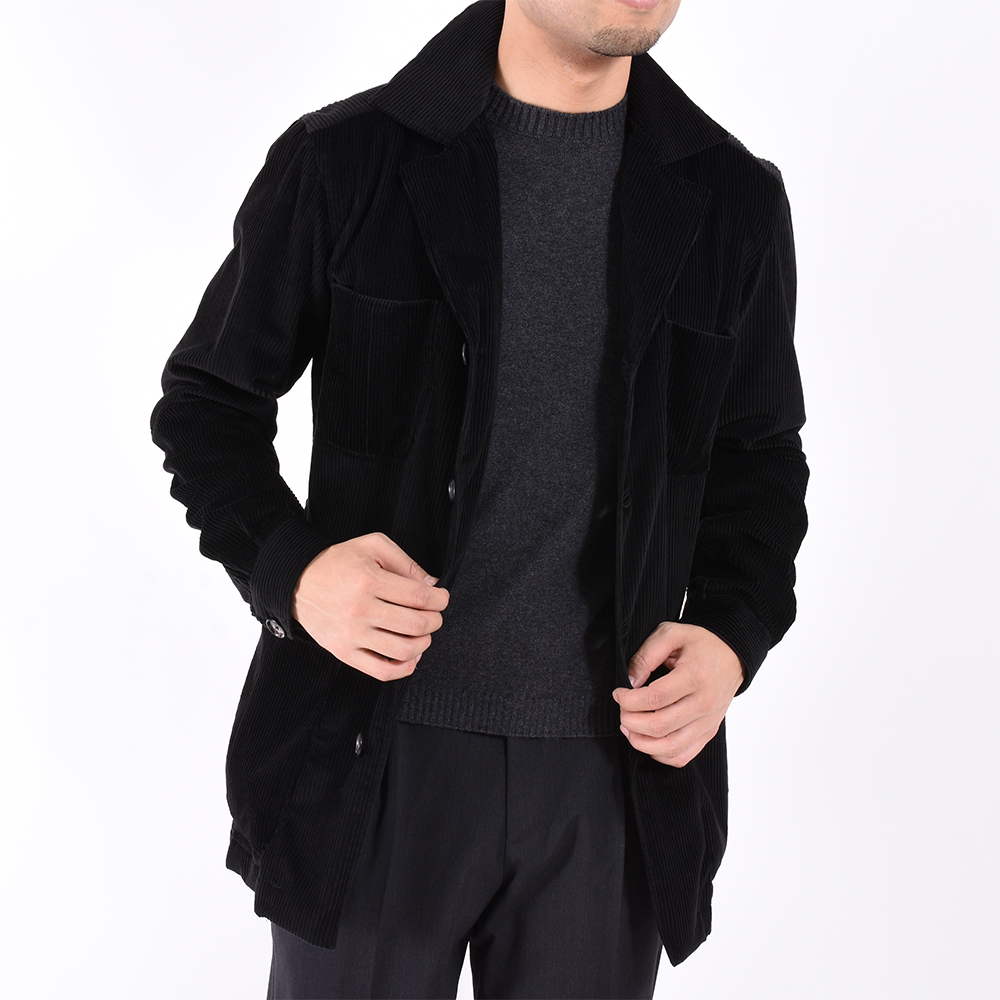 ・2019春夏シーズンに登場し、ご好評を頂いたサファリジャケットの秋冬版をご紹介!生地はカシミア混のコーデュロイ。太畝からもたらされる光沢感、カシミア混によるしなやかさが特徴で実に上品な生地感です。目付は325グラム。