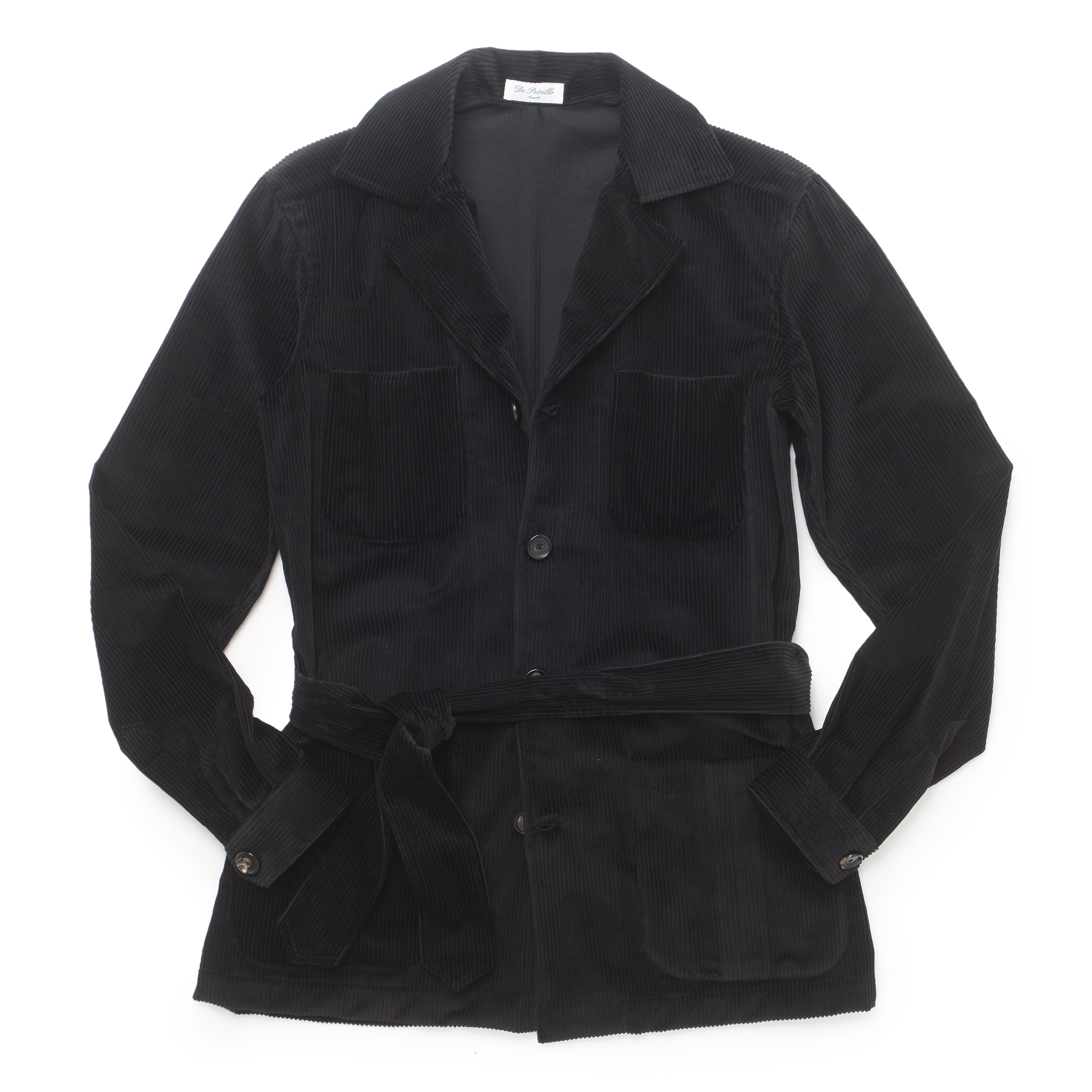 ・こちらのサファリジャケットはオーセンティックなデザインながら、スリーブ幅などツボを押さえたフィッティングの良さ、襟の形状やバックル無しのウェストベルト、といった部分に「De petrillo(デ・ペトリロ)」ならではのモダンなセンスが感じられます。
