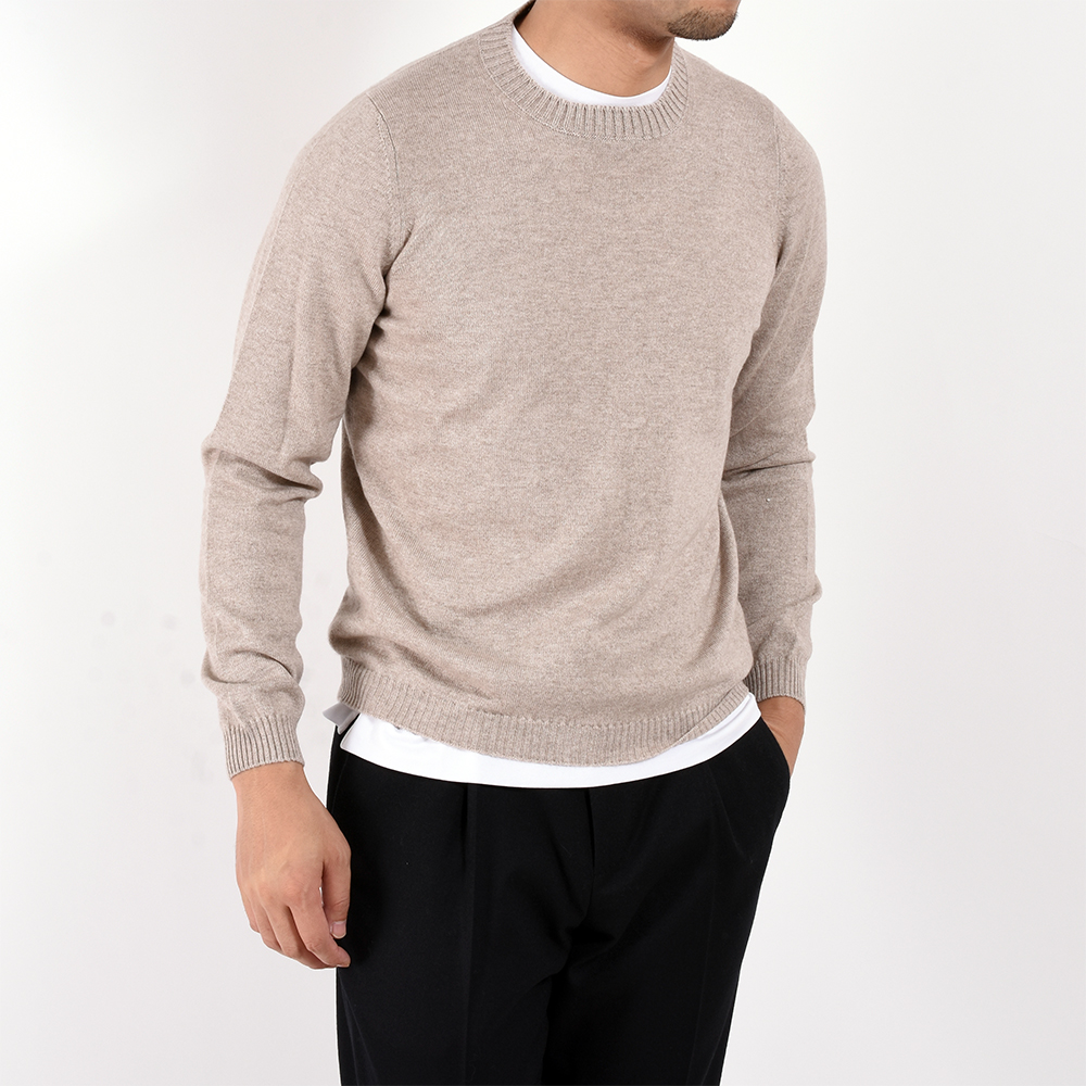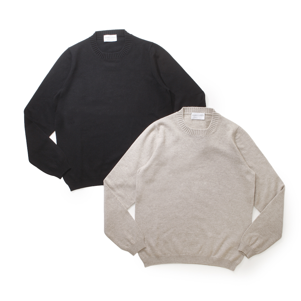 ・カシミアを代表とする素材の良質さ、フィット感やサイジングの良さ、といった部分で、B.R.SHOPのラインナップから「Settefili Cashmere(セッテフィーリ カシミア)」は絶対に外せないブランドのひとつ。ベーシックで長く着られるデザインが多い同ブランドですが、B.R.SHOPが考えるスタンダード且つラグジュアリーなアイテムを別注にてご用意しました。こだわったポイントは2つあり、リブ幅と編み地です。
