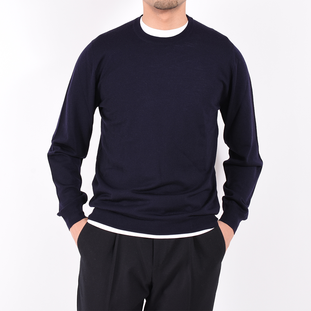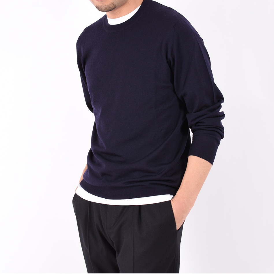 ・140'Sウールという極細糸を使用したハイゲージクルーネックニット。滑らかな肌触りでチクチク感は皆無。上質さが一目で分かるほどの圧巻クオリティーです。秋冬の「FEDELI(フェデーリ)」と言えばカシミアですがウールの実力もホンモノです。