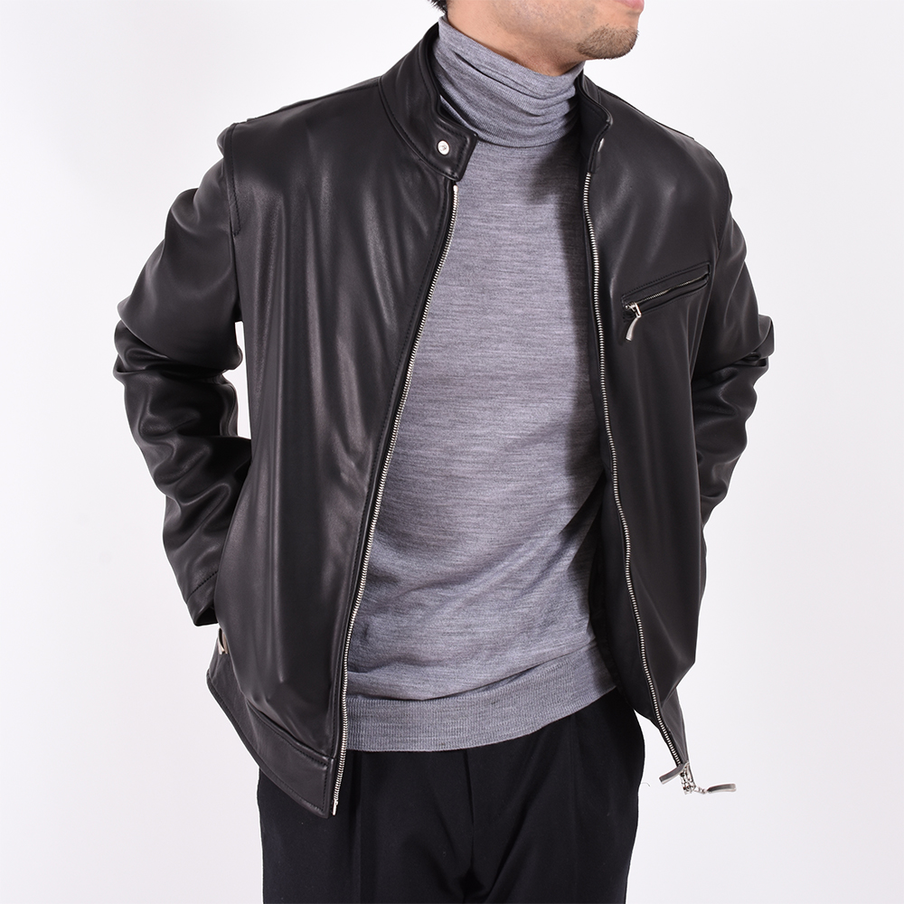 非常に滑らかな肌触りの柔らかい革を使用しているこちらのライダースは、すぐに身体に馴染むでしょう。肩後ろの両サイドのプリーツによって、腕の可動域を多く取っているのでライダース特有の窮屈さはまったくございません。