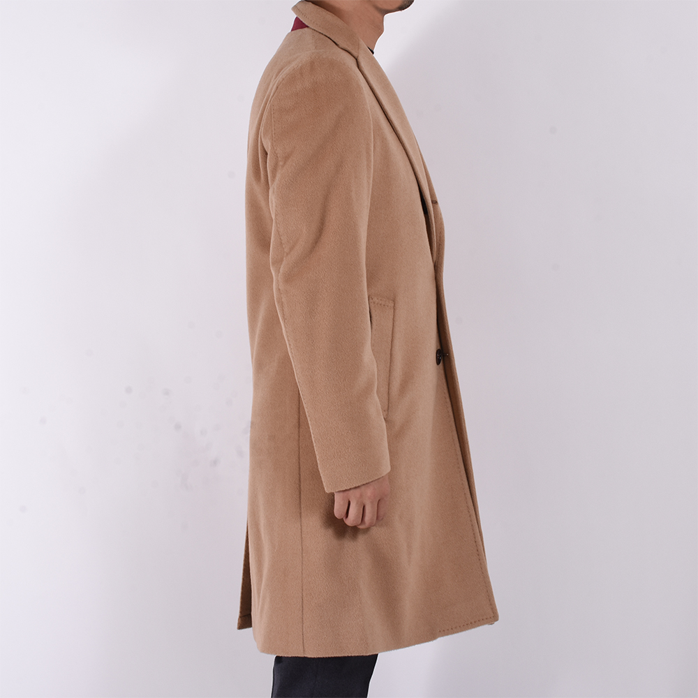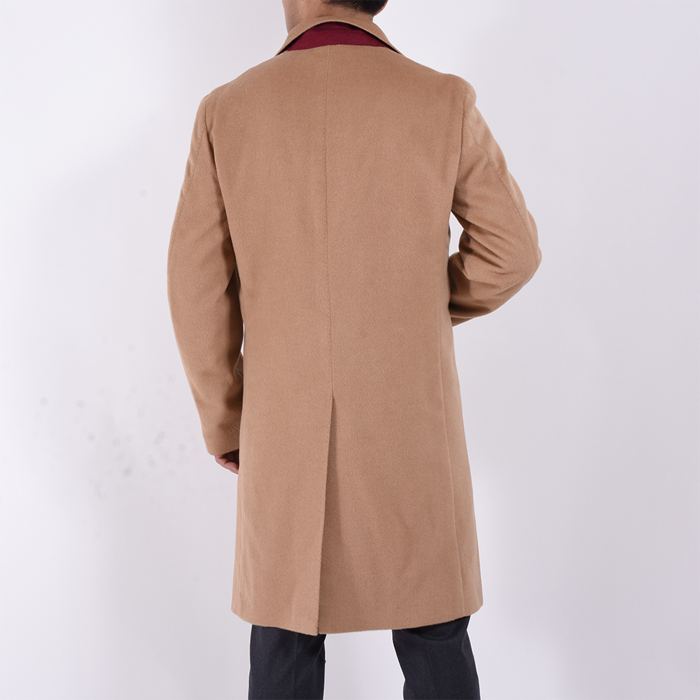 見て分かる。そして触っても分かる、素材の良さは半端じゃないです。そして、生地のブランドタグを見たところ、ロロピアーナのベビーキャメルヘアを使用している事に気付きました。ベーシックなシングル3Bコートは流行り廃り問わず着用が可能ですので、一生物になるのは間違いなし。細身体型でジャケットの上からサイズ46を着用し着丈は膝上7cm程で、サイズ感はピッタリでした。普段選ばれているサイズでよろしいかなと。