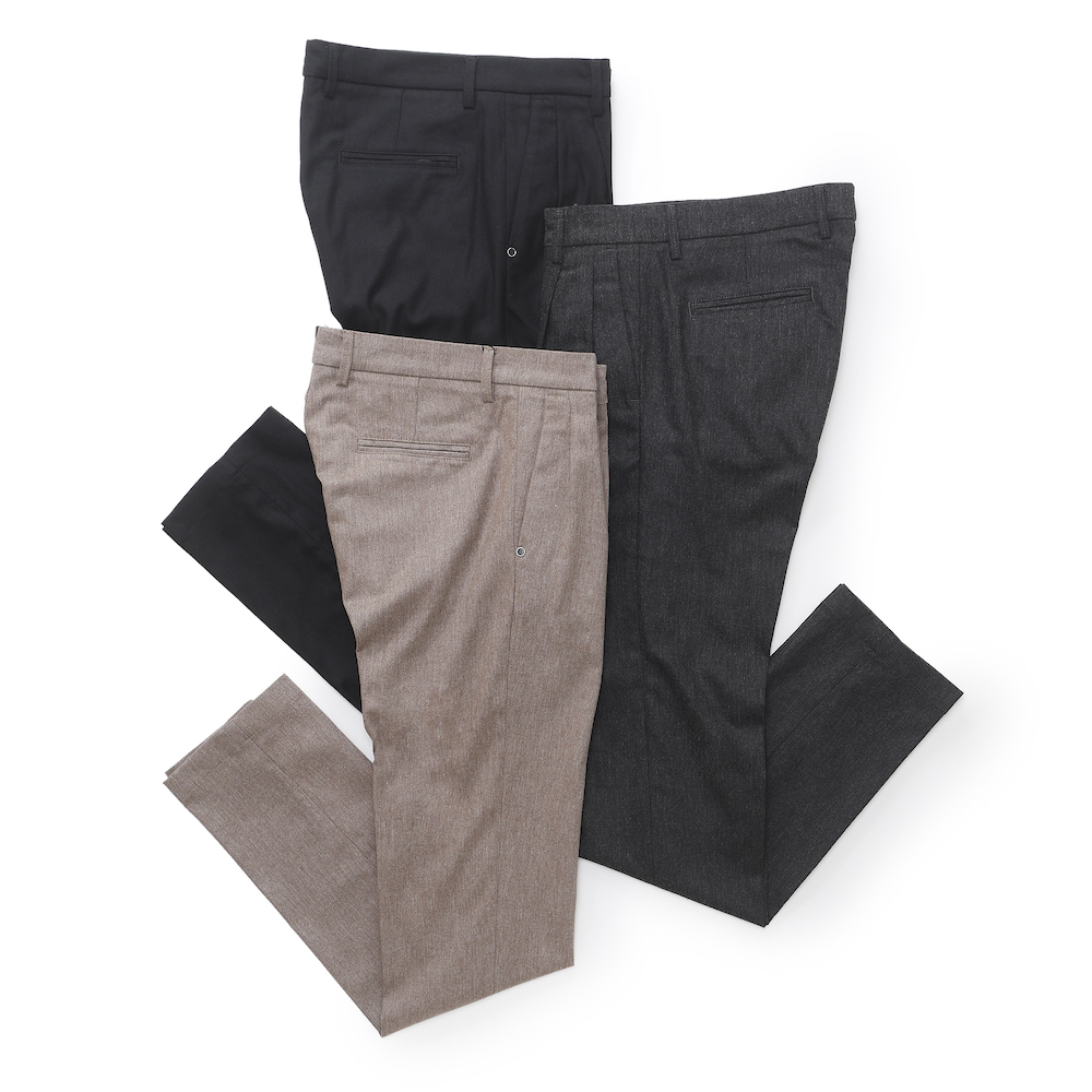 ・BRが、いま穿くべきパンツとして"進化系"と銘打っているパンツブランド「C+(シープラス)」。BRが推す「C+(シープラス)」の特徴はもともとデニムなどのカジュアルパンツを得意とする「C+(シープラス)」にドレス風味の素材を載せたこと。これによってスラックスらしい見え方ながらスニーカーを合わせても何ら違和感のない新しい感覚のパンツが生まれたのです。