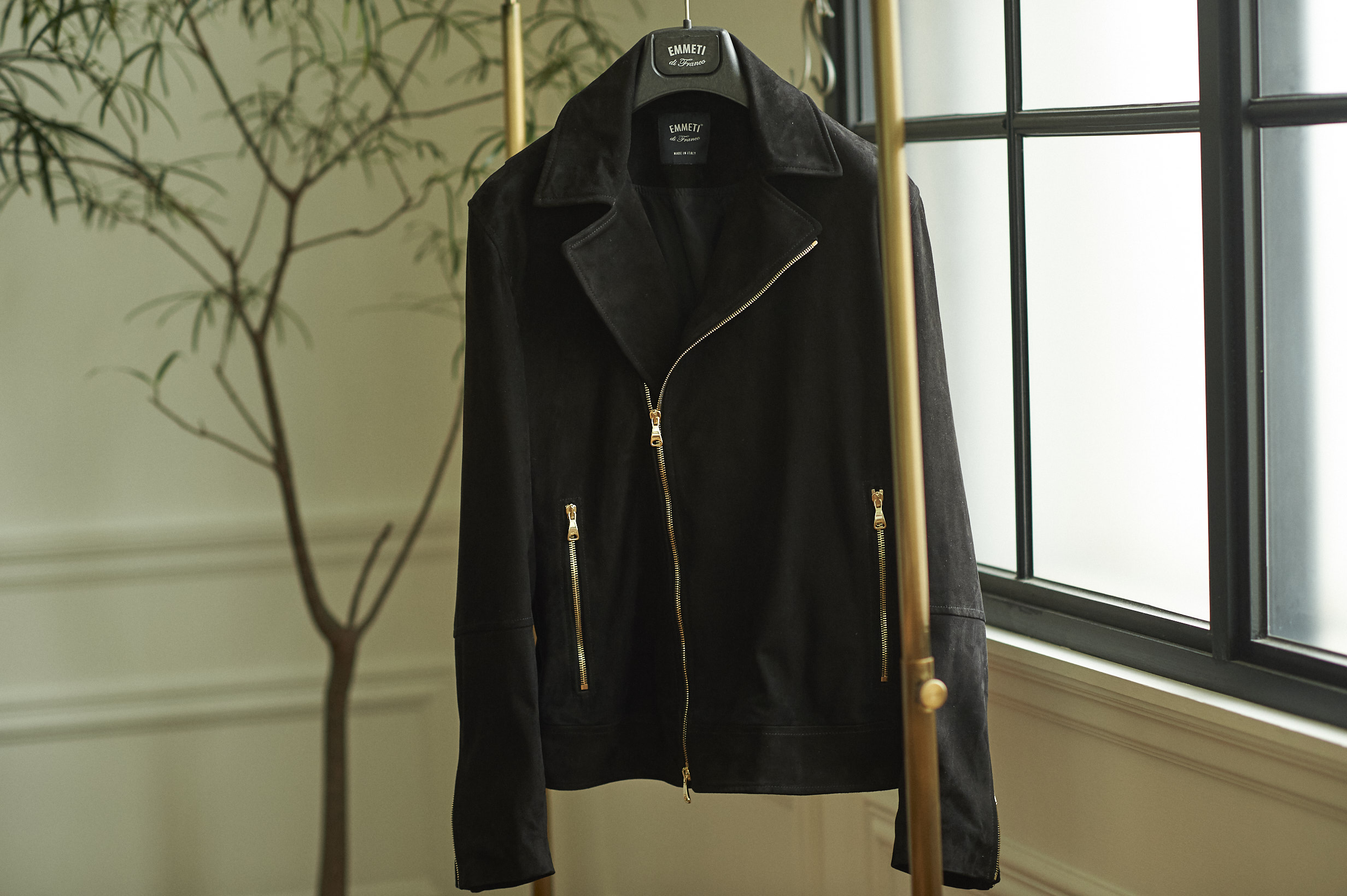 ・ハイクオリティーなレザーブランドとして絶大な支持を集める「EMMETI(エンメティ)」。そのシグネチャーモデルであるシングルライダースタイプ"JURI"と"ANDREA"をゴールドパーツに別注!その予約受注販売を行なったのが昨年秋から今年春でした。未だに「手に入れることは出来ないのか」というお問い合わせを頂いている人気の別注です。お問い合わせではゴールド別注シリーズへのご要望もあり、中でも多くのお声を頂いたのが"ダブルライダース"。それを遂に実現しました!