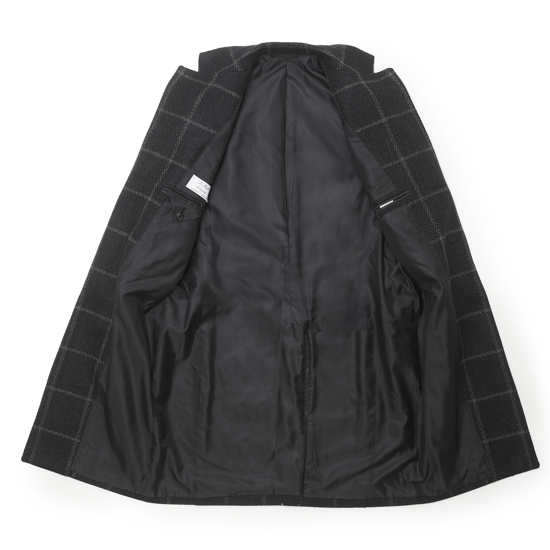 ・大柄コートながらグレーのトーンオントーンなので非常にシック。既製品だと高級生地で仕立てられた大柄コートはさほど多くありません。ゆえにこのスペシャルなトリプルコラボ別注にこの生地を選んだのです。