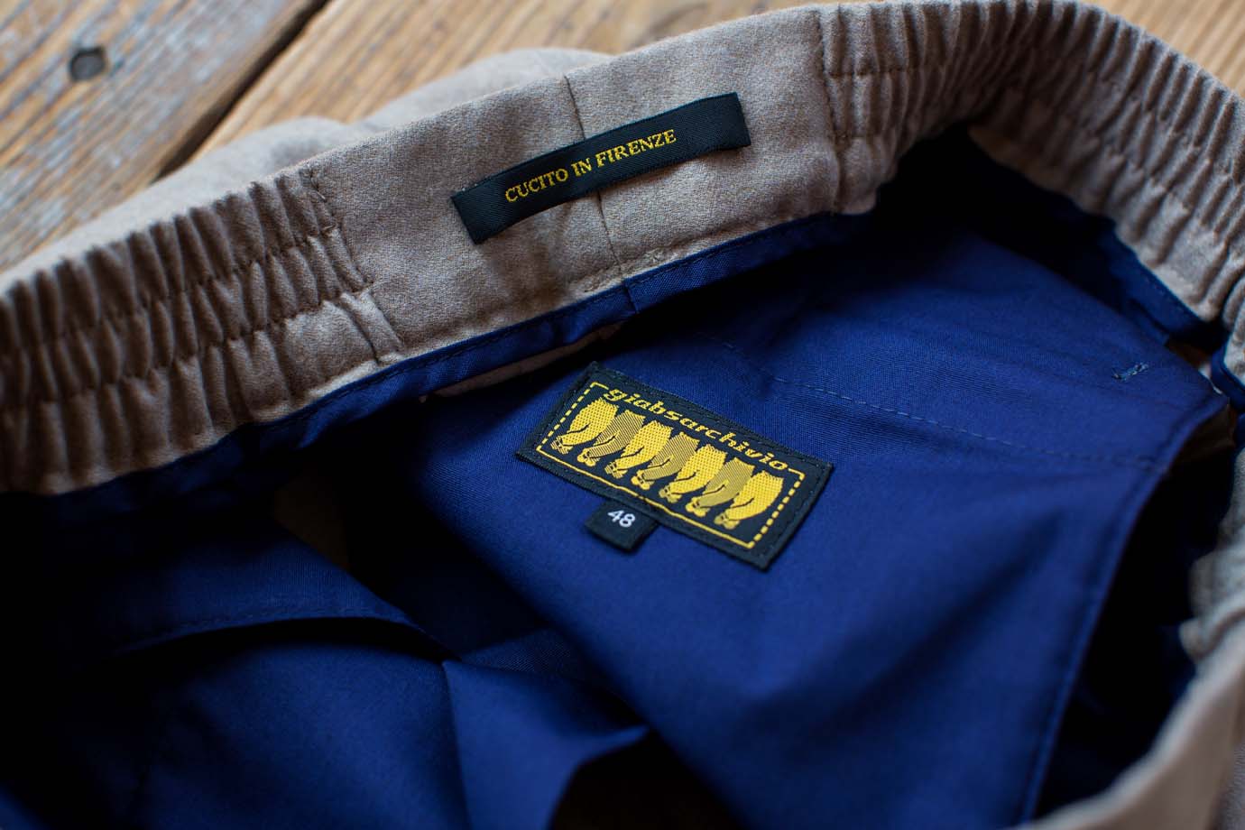・機能性ある生地を使いスポーティなパンツ作りを軸としていたgiabsarchivio(ジャブスアルキヴィオ)」。ブランドロゴや表記を一新した2019秋冬シーズンは新たな領域に足を踏み入れます。それがハイエンドラインの “ giabs_GOLD “。2019秋冬シーズンはイセタンメンズとBRのみの展開です!