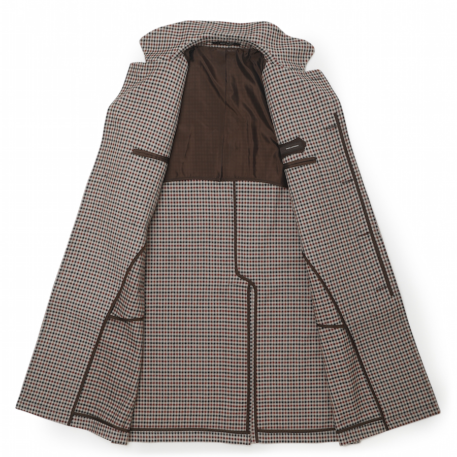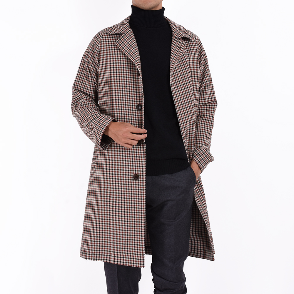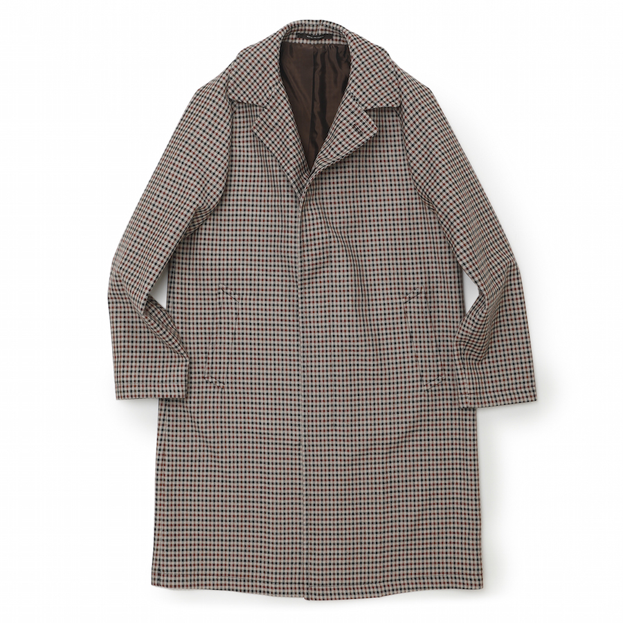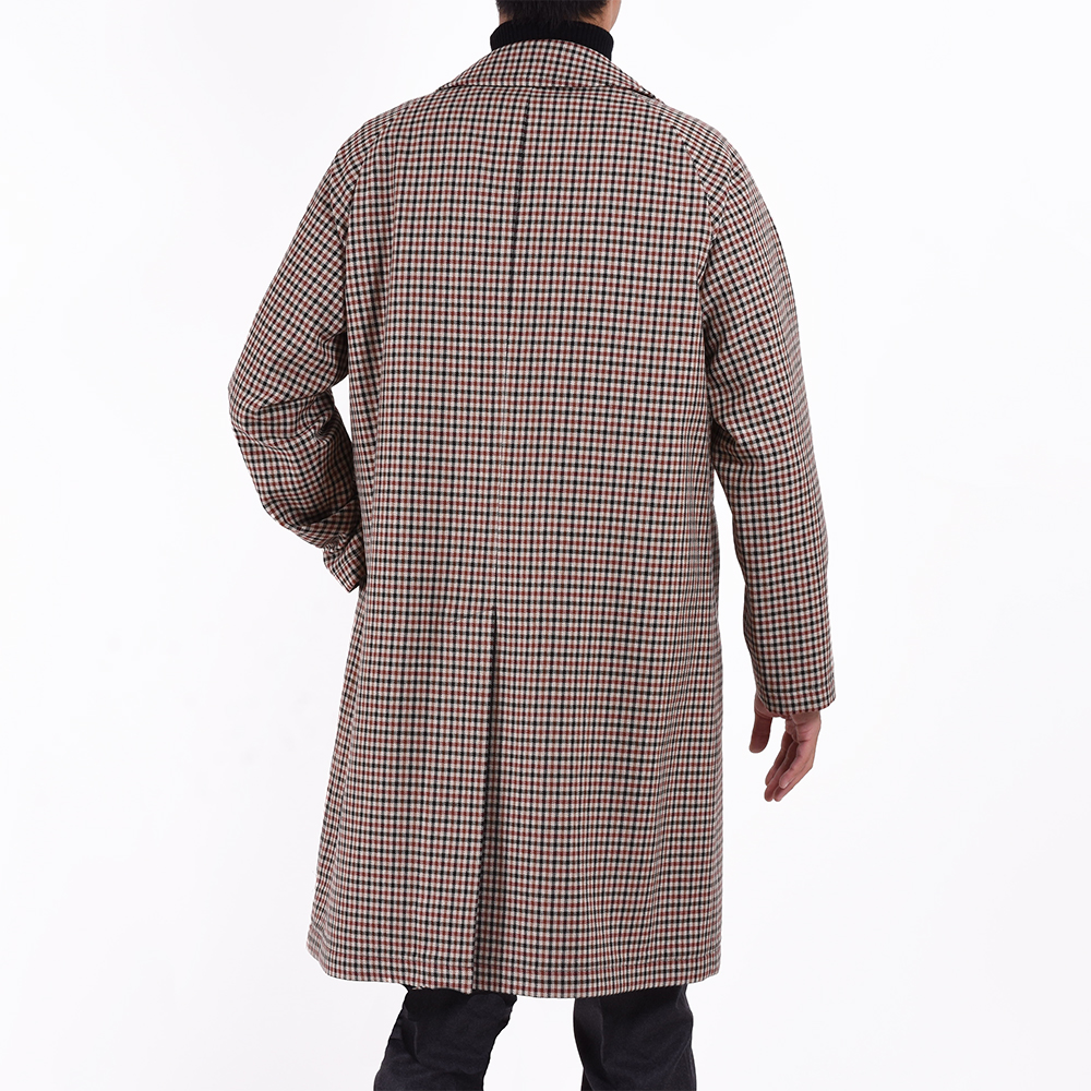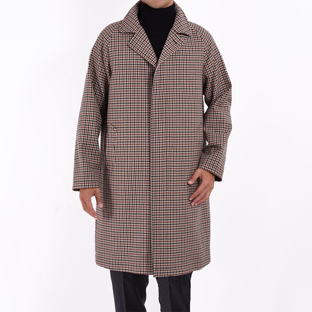 大変お待たせ致しました!ようやくタリアトーレからバルカラーコートが登場。一見、柄と配色が可愛らしい感じがしますが、着ると着丈のバランスやシルエットがかっちりとしているため男らしさが出るので、そのギャップが程よい雰囲気になります。生地感はハリがありながら、少し柔らかな触り心地になっております。細身体型でサイズ46を着用し着丈は膝上5センチ程の長さでした。普段選ばれているサイズでよろしいかなと。
